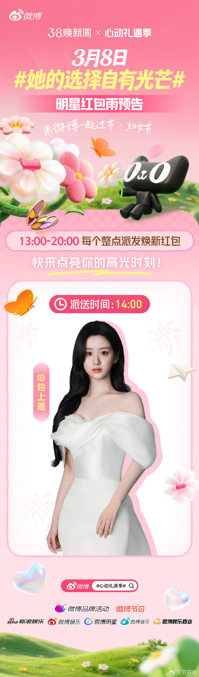 38节女明星红包团建 蔡昭小姐姐送上独家38节祝福啦!“愿你们像蔡昭一样,明媚飒爽,自在欢喜。”一起跟着包包灿烂生长!