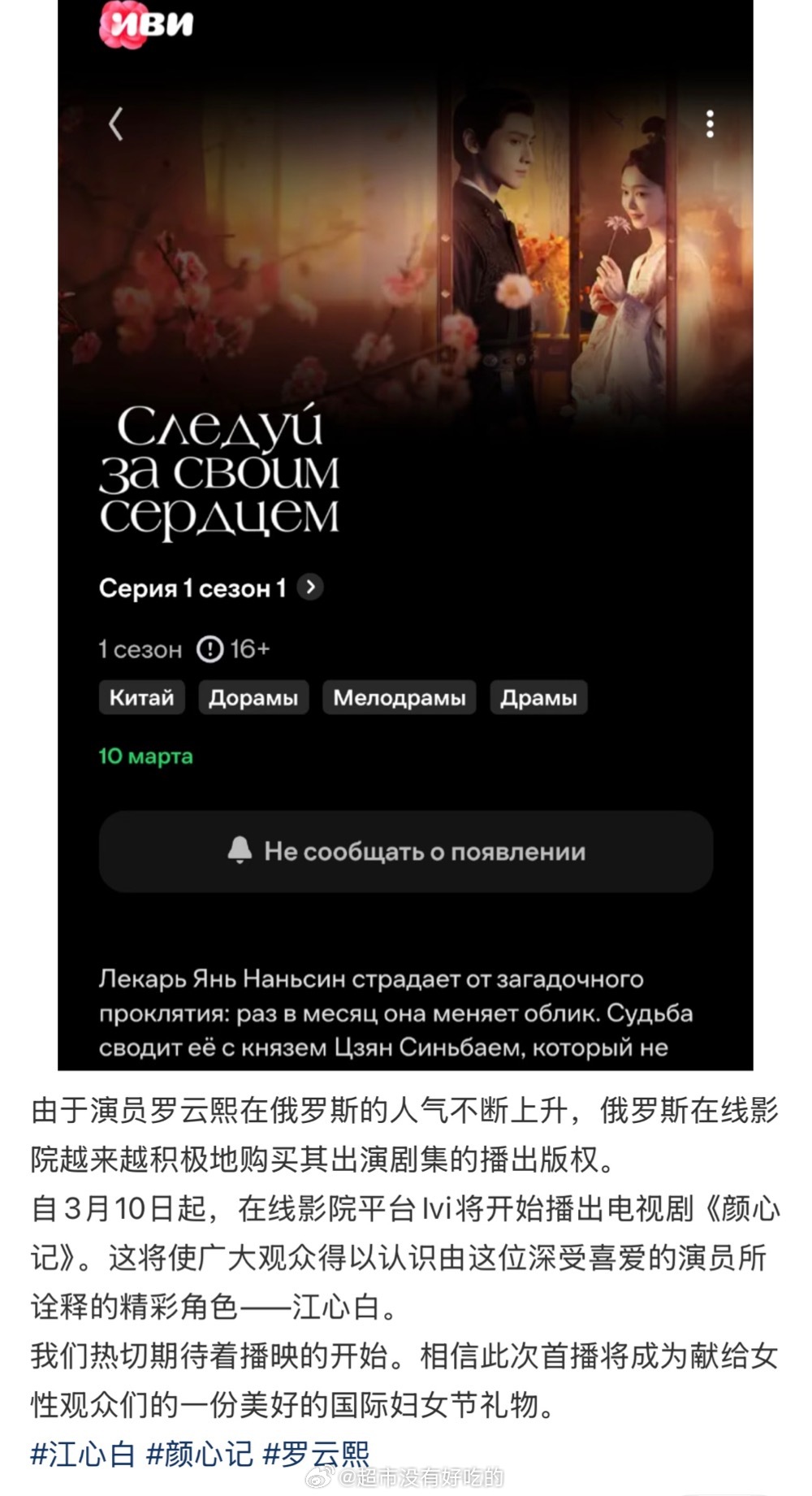俄罗斯在线影院购买了《颜心记》播出版权俄妹们幸福的,又可以看罗云熙的剧了罗云熙海外粉丝是真多,海外人气这块是实🔥罗云熙罗云熙