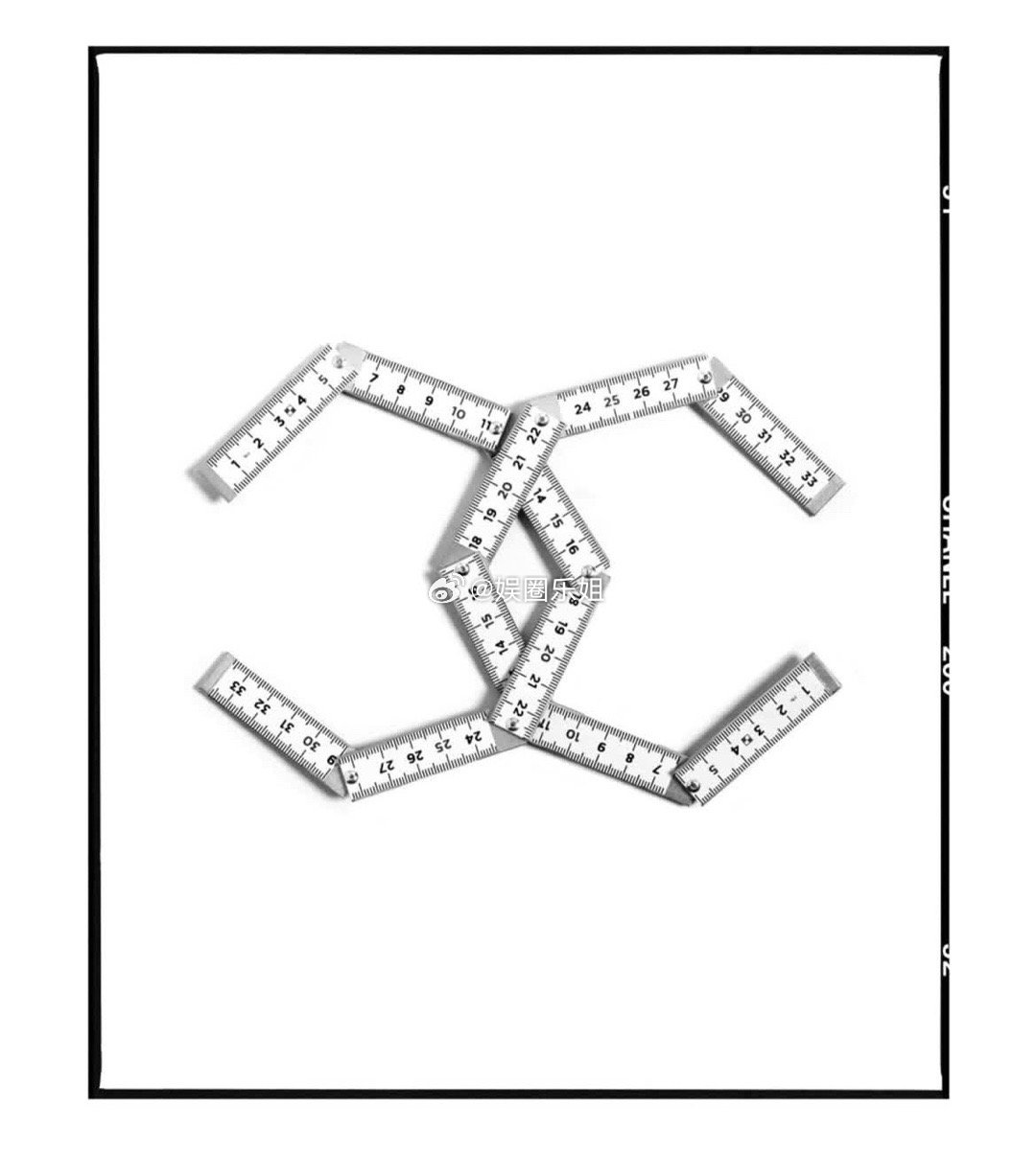 本次秀票设计别具巧思,一把工坊常用的折尺,经由摄影师David Bailey拼组为双C标志。折尺作为高定与成衣工坊的核心工具,象征着对剪裁、结构与比例的精准追求。