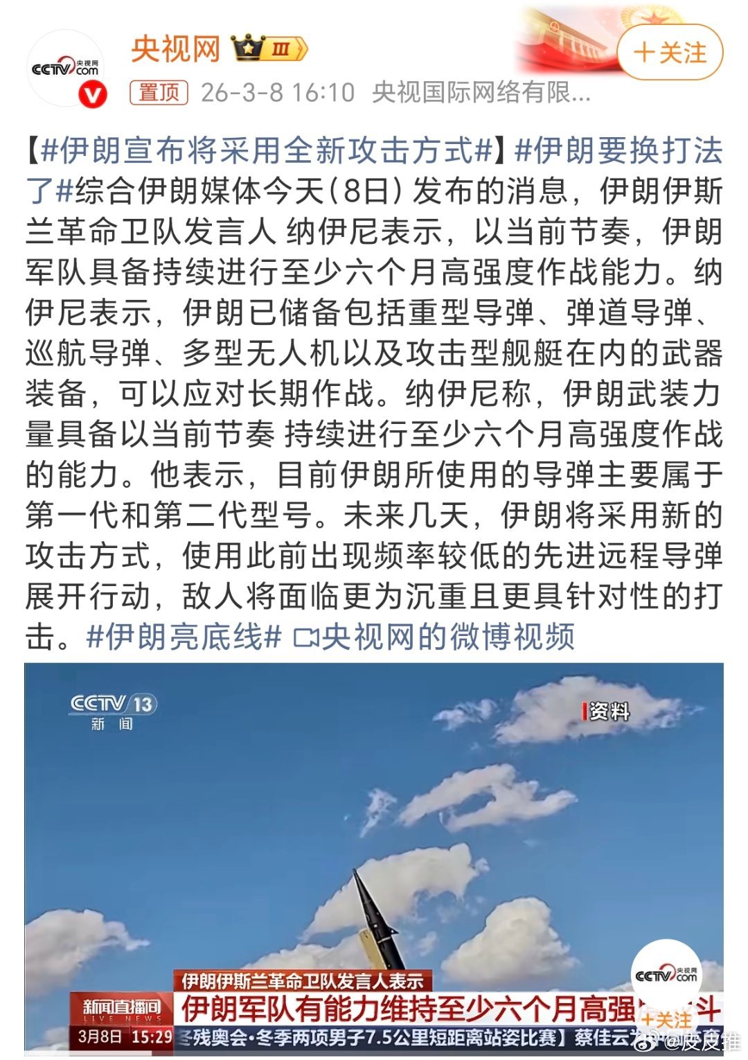 伊朗宣布将采用全新攻击方式原本很多人以为美以对伊朗战争,会很快让伊朗跪地求饶,但是现在来看,伊朗打的很有章法,这场战争短时间内也很难结束,美国很可能会重陷战争泥淖中。 伊朗说将推动美国完全撤出中东