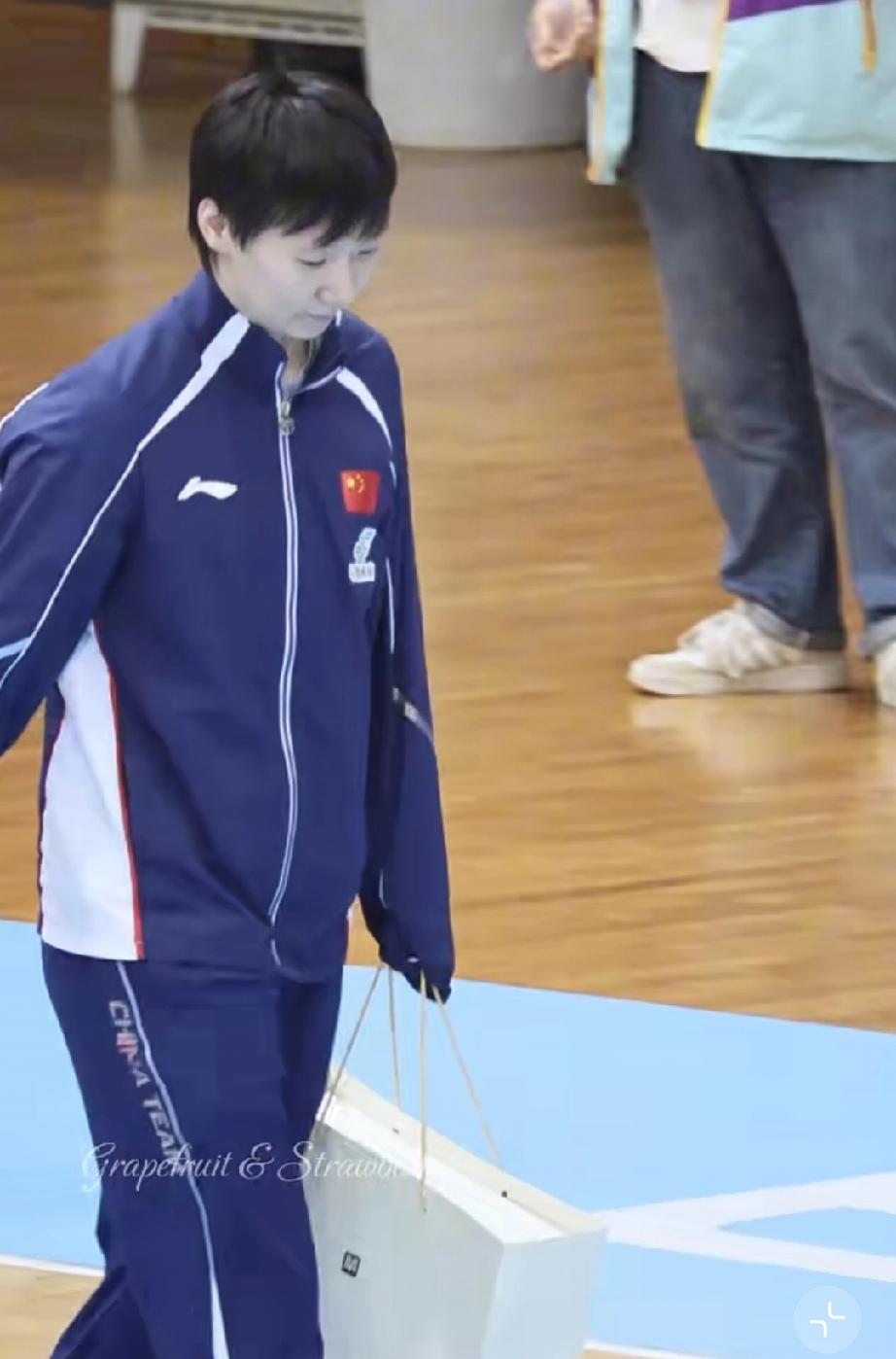 今天下午与陈幸同、蒯曼等队友在重庆参加完“国球进社区”相关活动,拎着主办方现场赠予的礼物袋离开的王曼昱。 曼昱今天发现重庆其实还是挺冷的,昨天刚到重庆,直接穿薄外套就出门了,今天做活动,还特别套上羽绒服保暖。 还是要小心保护身体,目前这个季节冷热交替,更需要注意保养。