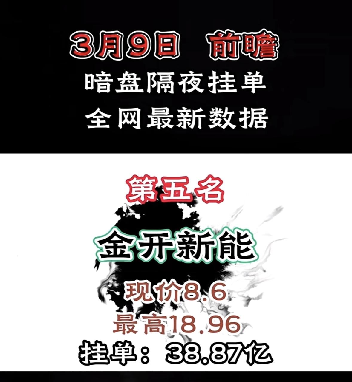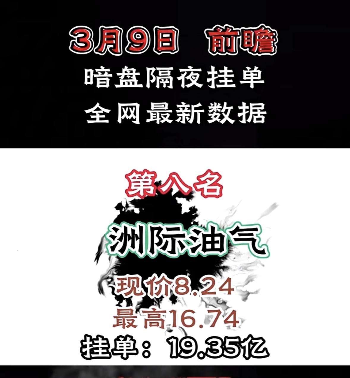 3月9日暗盘隔夜挂单前8名个股揭晓 油气市场前瞻:暗盘隔夜挂单,全网最新数据揭晓! "拓维信息暗盘表现抢眼,挂单量居首,现价飙升潜力大,市场关注度高。"