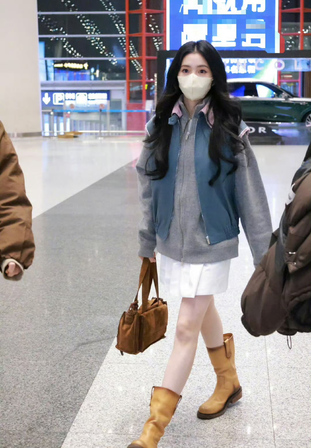 刘浩存出发巴黎时装周,一身甜酷风穿搭现身机场,大波浪发型搭配短裙长靴,整体造型又甜又酷