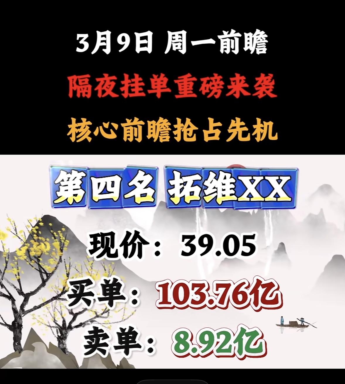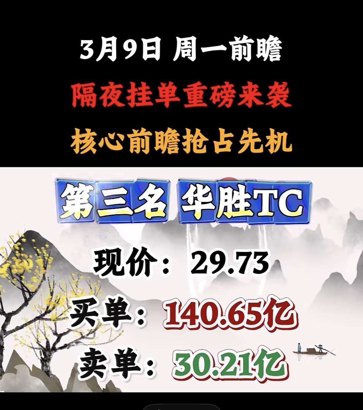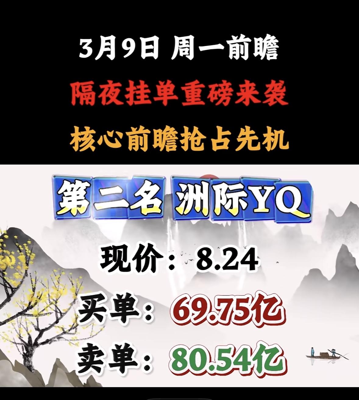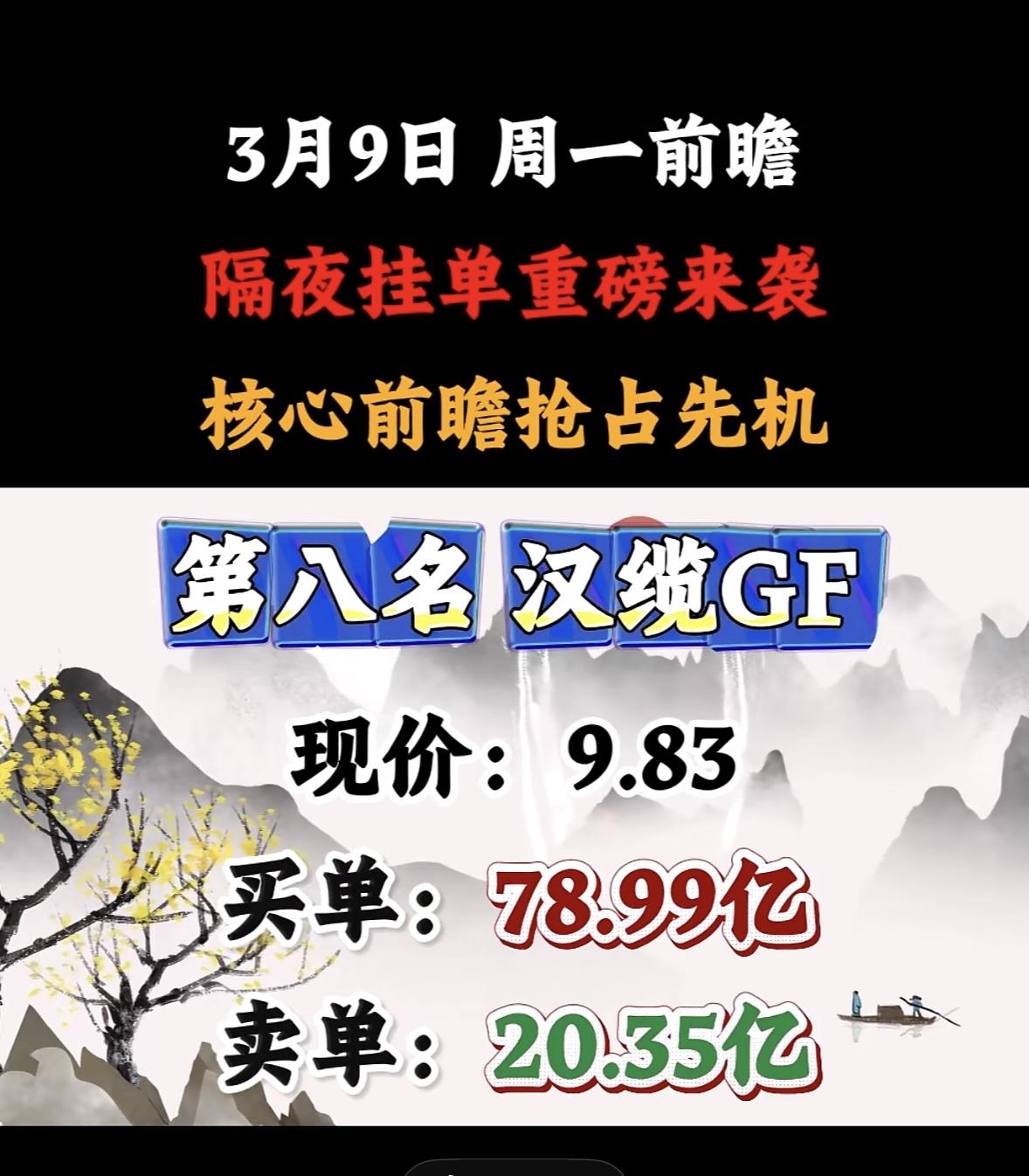 3月9日星期一暗盘隔夜挂单前8名个股揭晓 汉缆股份强势来袭,现价9.83,买78.99亿,卖20.35亿,不容错过! 协鑫隔夜挂单引爆市场,买卖单悬殊显强势,前瞻布局抢占先机,投资者紧盯动向待爆发。