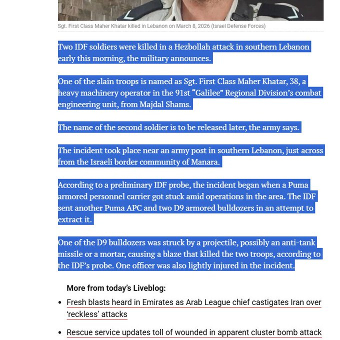 🔻以色列时报:两名以军士兵在与真主党武装的交火中进入摇号。伊朗宣布将采用全新攻击方式伊朗选出新最高领袖海外新鲜事中东现场直击