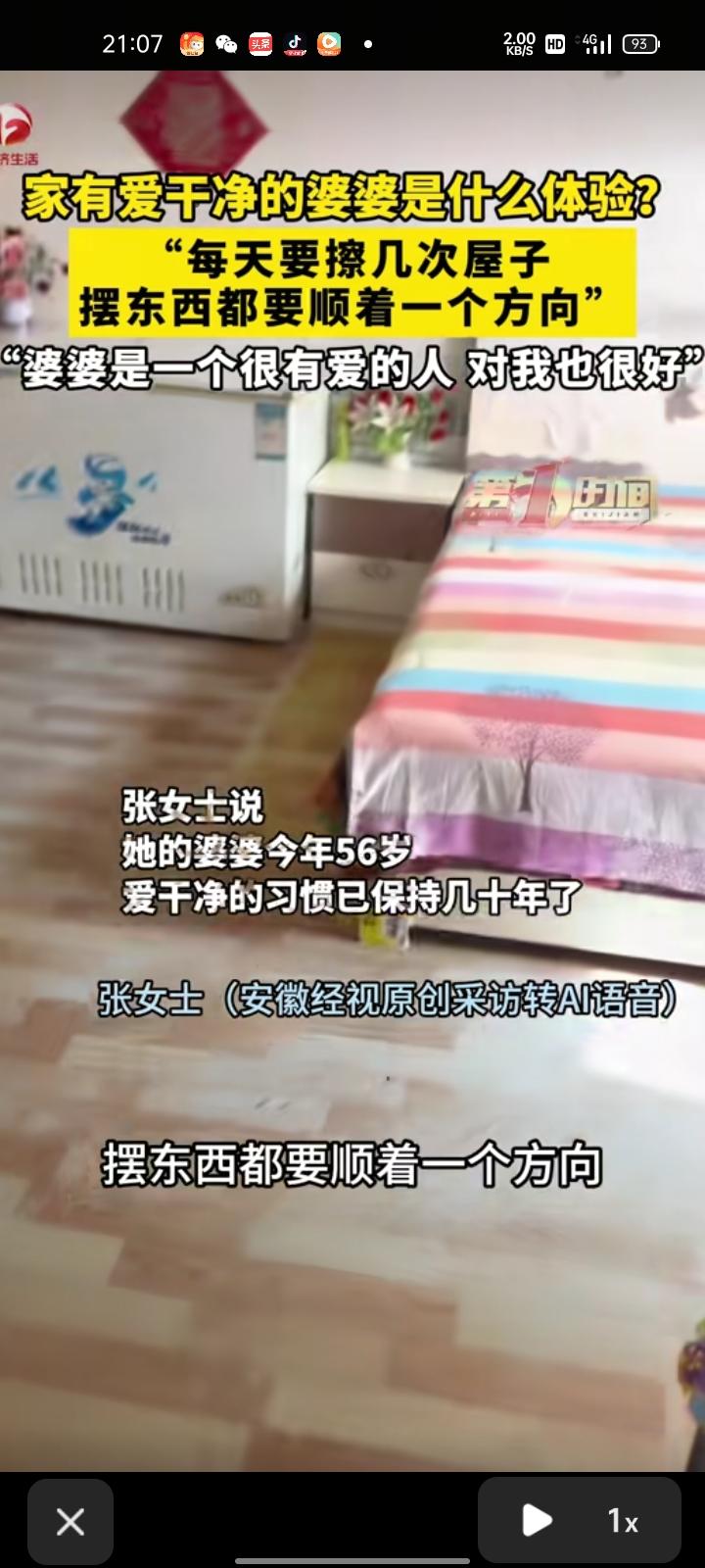3月7日,宁夏吴忠。张女士晒出农村婆婆家,家里整齐又干净。婆婆每天都要擦好几次屋子,摆东西都顺着一个方向,这种爱干净的习惯已经保持几十年了。婆婆是位很可爱的人,对自己也很好,回到婆婆家永远是开心的