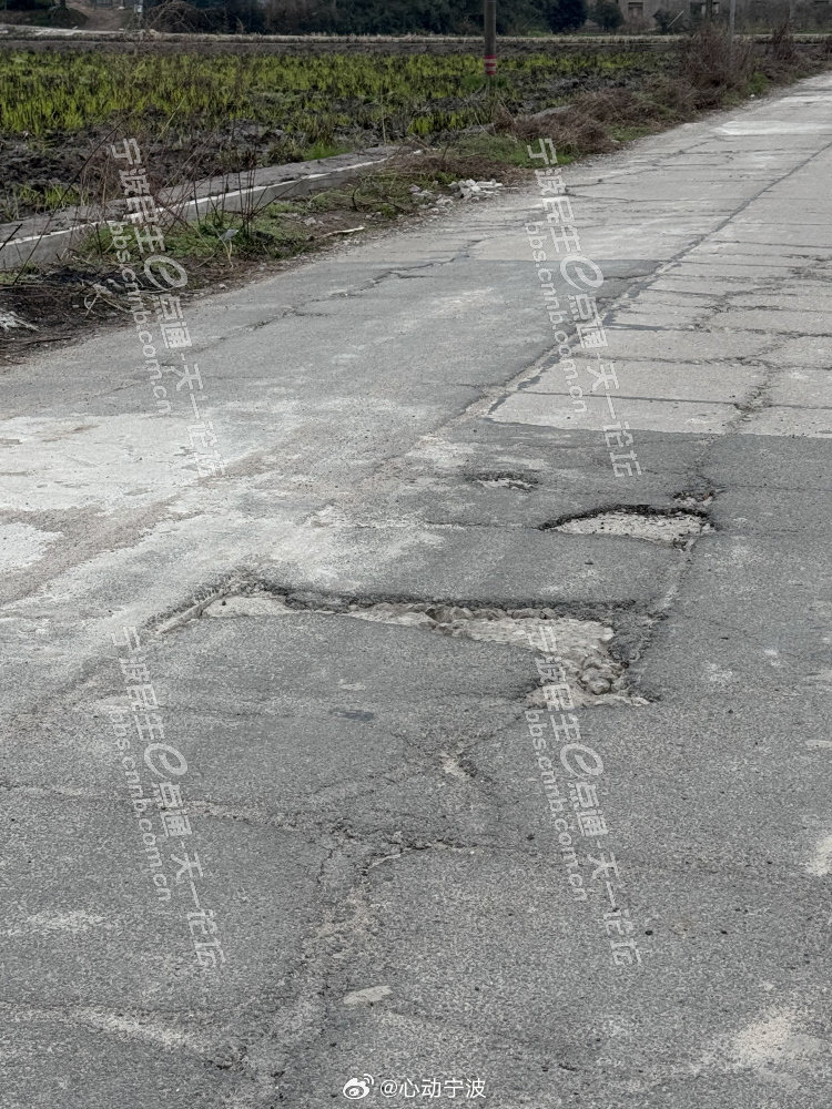 宁波奉化一村道破损修复工作尚未开展 2月11日,网友“正义皮特君”通过宁波民生e点通反映,宁波市奉化区西坞南路谢任岙村附近的村道路段,因高速公路工程车频繁进出出现破损、塌陷情况。该网友表示,此前曾多次反馈该问题,虽收到官方回复,但路面始终未得到修复,而高速公路工程仍将持续,日益恶化的路况已对周边居民日常出行造成影响。
