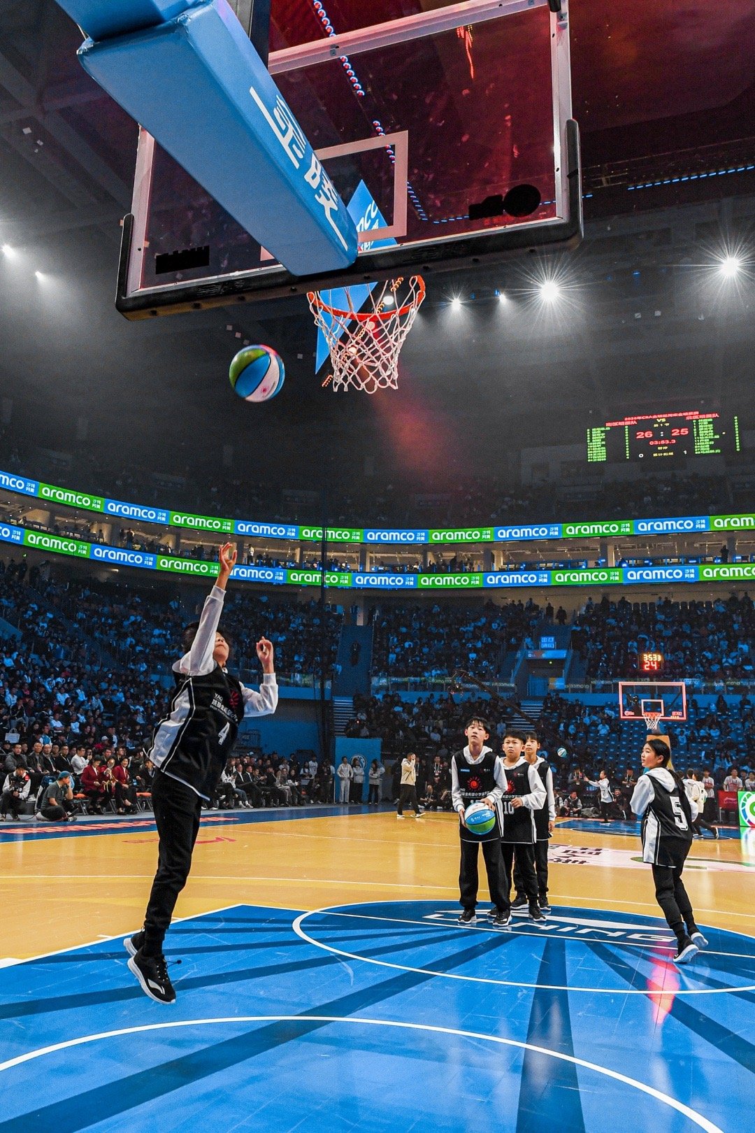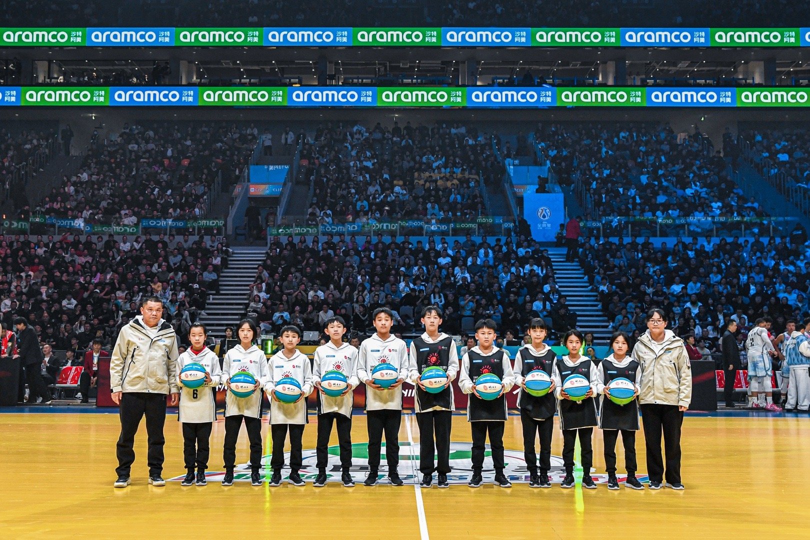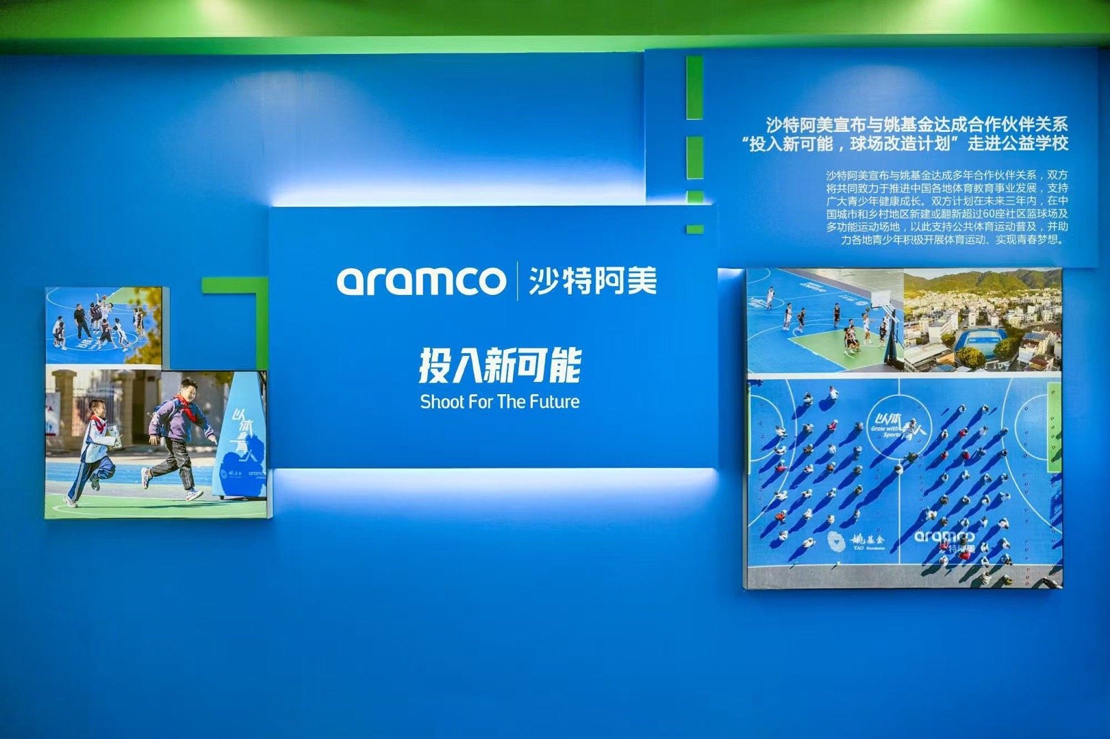 沙特阿美 携手姚基金 与CBA,为孩子们打造了一座充满爱与希望的新球场。王博、胡金秋 、赵继伟带领小朋友参与到篮球运动之中,让孩子们热爱上这项运动。