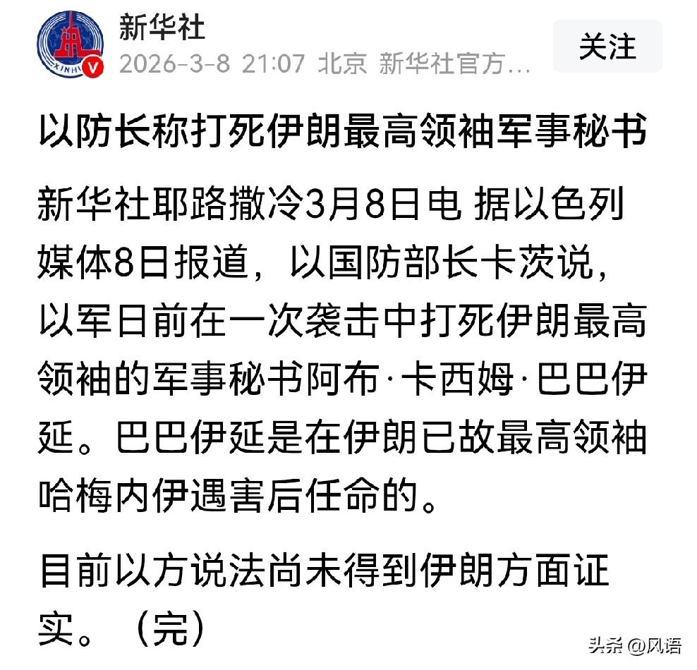 巴巴伊延战死,说明伊朗的情报工作依旧在混乱中。 记得俄乌冲突中的一段时间,俄罗斯的高级军事指挥官不断的被乌军狙杀,有分析认为,是由于这些官员过度的依赖通讯工具,而在美国与西方的情报库中,储存这些官员大量的形为数据,其中包括声纹,因此,只要动用通讯工具,Al就能从海量的通讯数据里把它提出来,从而确定它的行动路径、座标。 如果所传属实,那么美国运用这一段系统就更容易了,因为在乌克兰,侦察分析与决策行动是两个单位,时效性太差,而且在执行的手段上,美国的选择更多也更先进。 军事秘书位置极为重要,是最高领袖的直接联系人,而巴巴伊延当下的直接领导很可能是阿里·拉里贾尼(最高国家安全委员会秘书)。巴巴伊延据说才选上来没几天,他的前任在28日被炸身亡,那一晚,还有多达40多个高级将领与官员一同遇害,看来,伊朗情报系统混乱依旧没改过来。