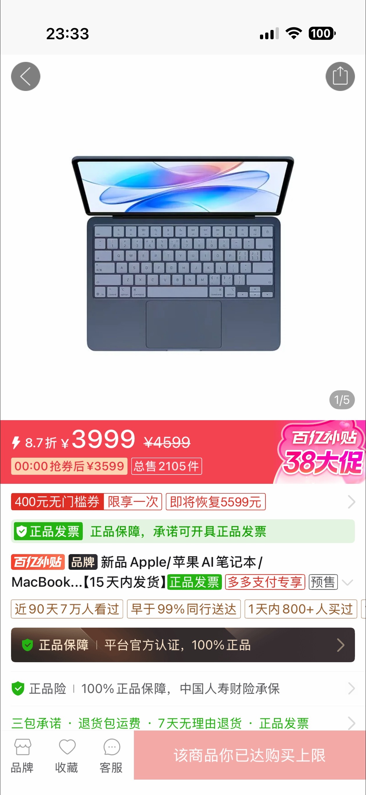 不是,我昨天在多多3800买的MacBook Neo还没发货今天就已经3600了?