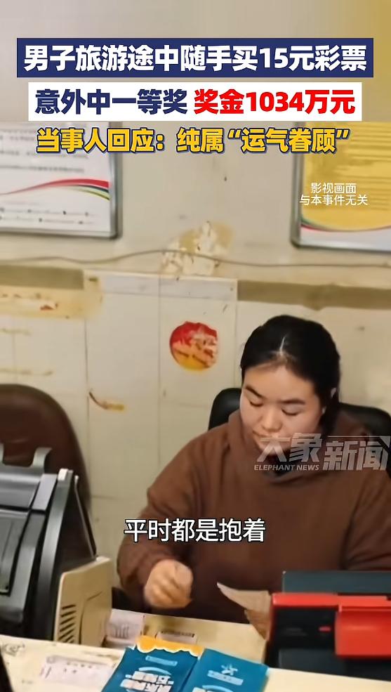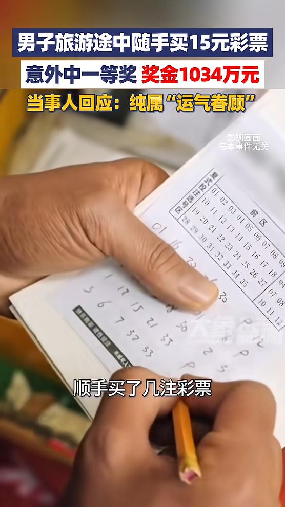 “这就是命啊!”近日,云南丽江,一外地男子来旅游,当天在外闲逛的时候,路过了一家彩票店,花了15元顺手买了几注彩票,没想到竟中了一等奖,奖金高达1034万元!这让男子始料未及,自己也表示是“运气眷顾”!网友:羡慕哭了!   事情发生在近日,一位外地男子周先生(化姓)来到丽江旅游,他本来就是来放松的,看看雪山,逛逛古城,享受慢节奏的旅行时光,没想着能有什么意外惊喜。   当天,他在丽江市里闲逛,路过一家体彩实体店,一时兴起,就顺手进去买了几注超级大乐透,一共花了15元。   买的时候,周先生完全没当回事,没研究号码,也没刻意守号,纯粹是给旅途添点小乐趣。   他后来也说,自己平时买彩票就抱着轻松娱乐的心态,花的钱不多,就算不中,也当是为公益事业出份力,从来没指望能中大奖。   可命运就是这么巧,当期超级大乐透开奖后,周先生无意间核对号码,发现自己买的几注彩票里,居然有一注中了一等奖,奖金高达1034万元。   这个结果让他彻底懵了,完全始料未及,反复核对了好几遍,才确认自己真的中了大奖。   面对这份突如其来的幸运,周先生笑着说,没什么秘诀,就是心态好、运气好,再加上丽江山美水美,算是美上加美。   他还幽默地给大家提了个旅行建议,来丽江除了看雪山、逛古城、喝咖啡,不妨顺便买张大乐透,说不定好运就会找上门。   这件事传开后,网友们的讨论炸开了锅,有人说“别人的旅行是看风景,他的旅行是抱大奖”,也有人调侃“我去丽江只带回了回忆,他带回了千万身家”。   羡慕归羡慕,大家也都清楚,这样的运气可遇不可求。   其实仔细想想,周先生能中奖,除了运气,更重要的是他的心态,他没有把买彩票当成发家致富的途径,只是当作一种娱乐方式,不沉迷、不盲目,这种理性购彩的态度,反而让他收获了意外之喜。   现在很多人买彩,总抱着一夜暴富的心态,花大价钱跟风投注,最后得不偿失。   其实彩票本身是公益事业,理性购彩才是核心,就像周先生说的,不中就当献爱心,中了就是运气眷顾,这样的心态才是最该有的。   15元,可能只是一杯奶茶、一碗米线的钱,却给周先生的丽江之旅,留下了一辈子难忘的回忆。   这份幸运固然让人羡慕,但更值得我们学习的,是他不沉迷、不浮躁的心态,毕竟,生活的美好,从来不是靠运气,而是靠脚踏实地的努力。   对此你有什么不同的看法,可以在评论区留言讨论!!!