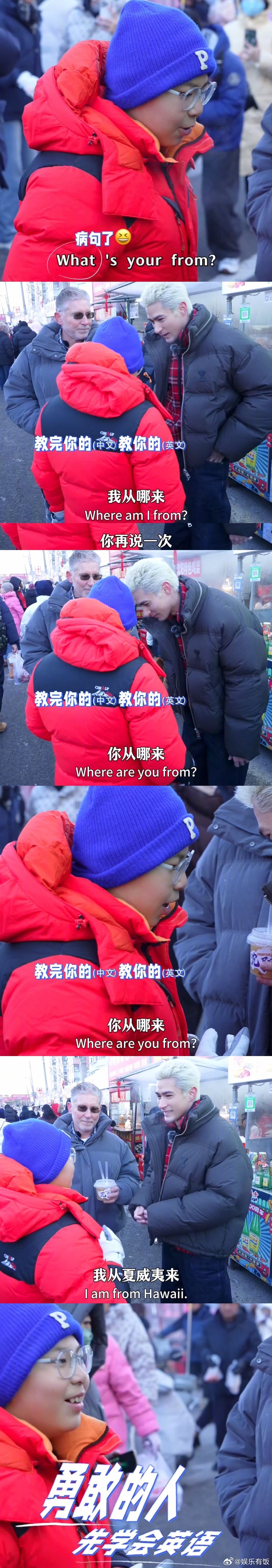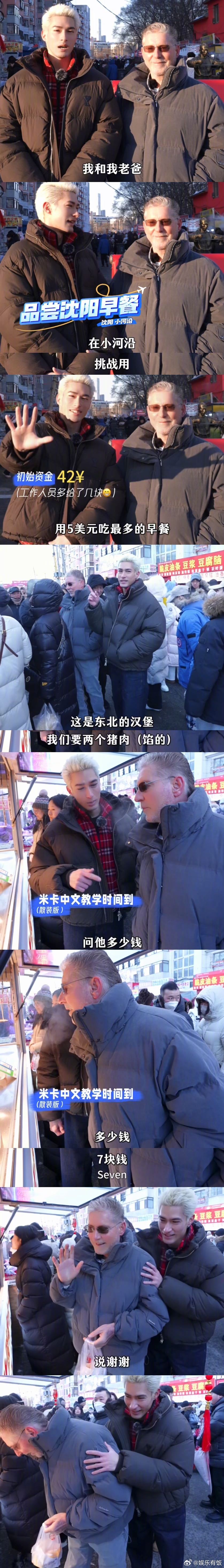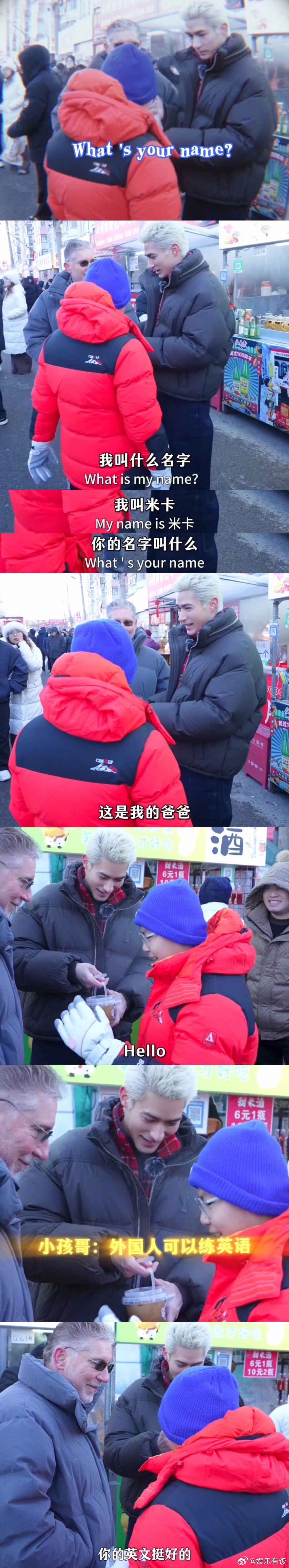 米卡在东北早市当外教 东北早市有自己的野生外教😂早市偶遇的陌生小孩哥主动来跟米卡父子搭话练口语,米卡0秒就接受了“外教”身份,不仅和小孩哥聊上了还耐心地纠正错误,建议米老师全国巡讲☝️🤓