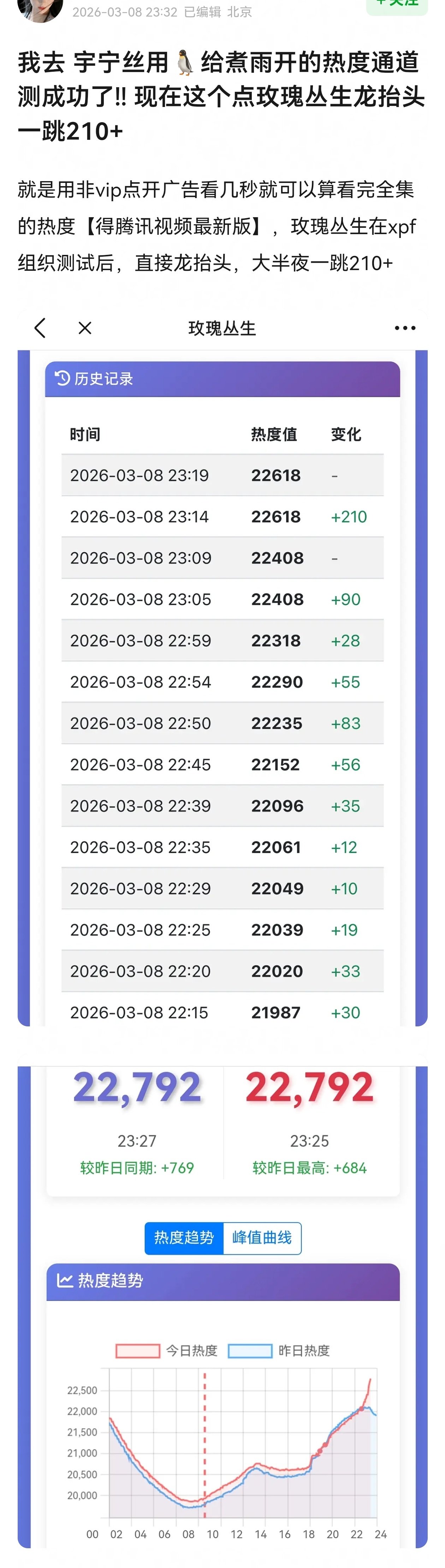 玫瑰丛生腾讯站内热度成0了一个搓的眼冒金星还被清零,一个so easy