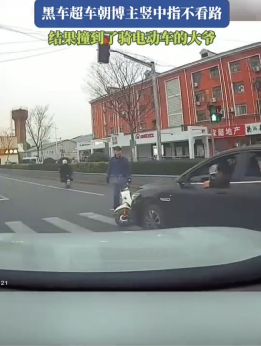 男子朝礼让行人司机竖中指后撞到路人 该!女子回应礼让行人被竖中指