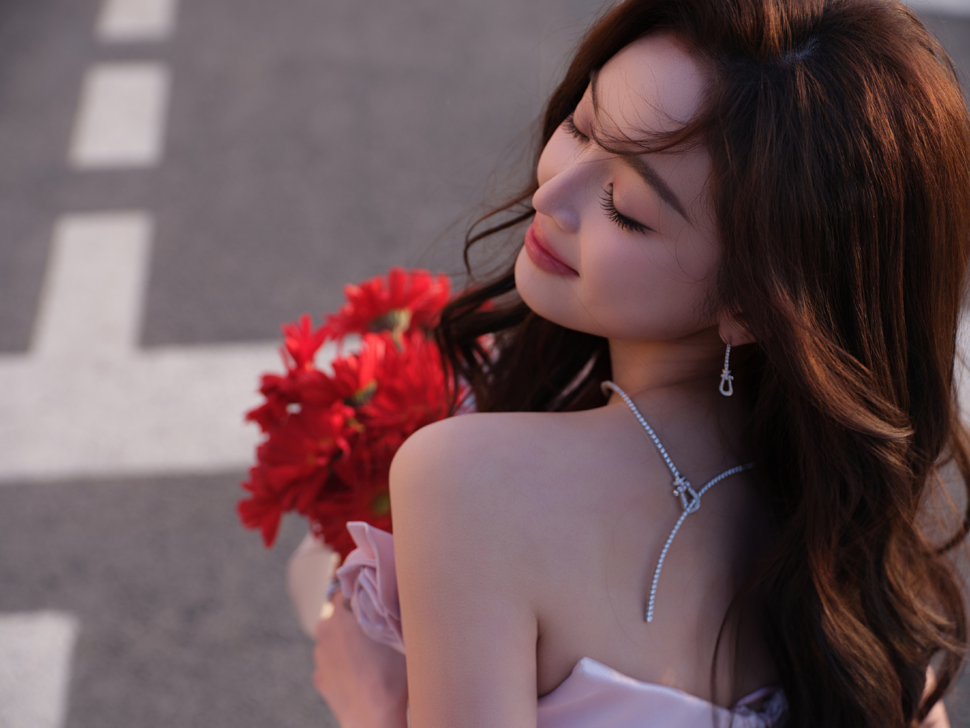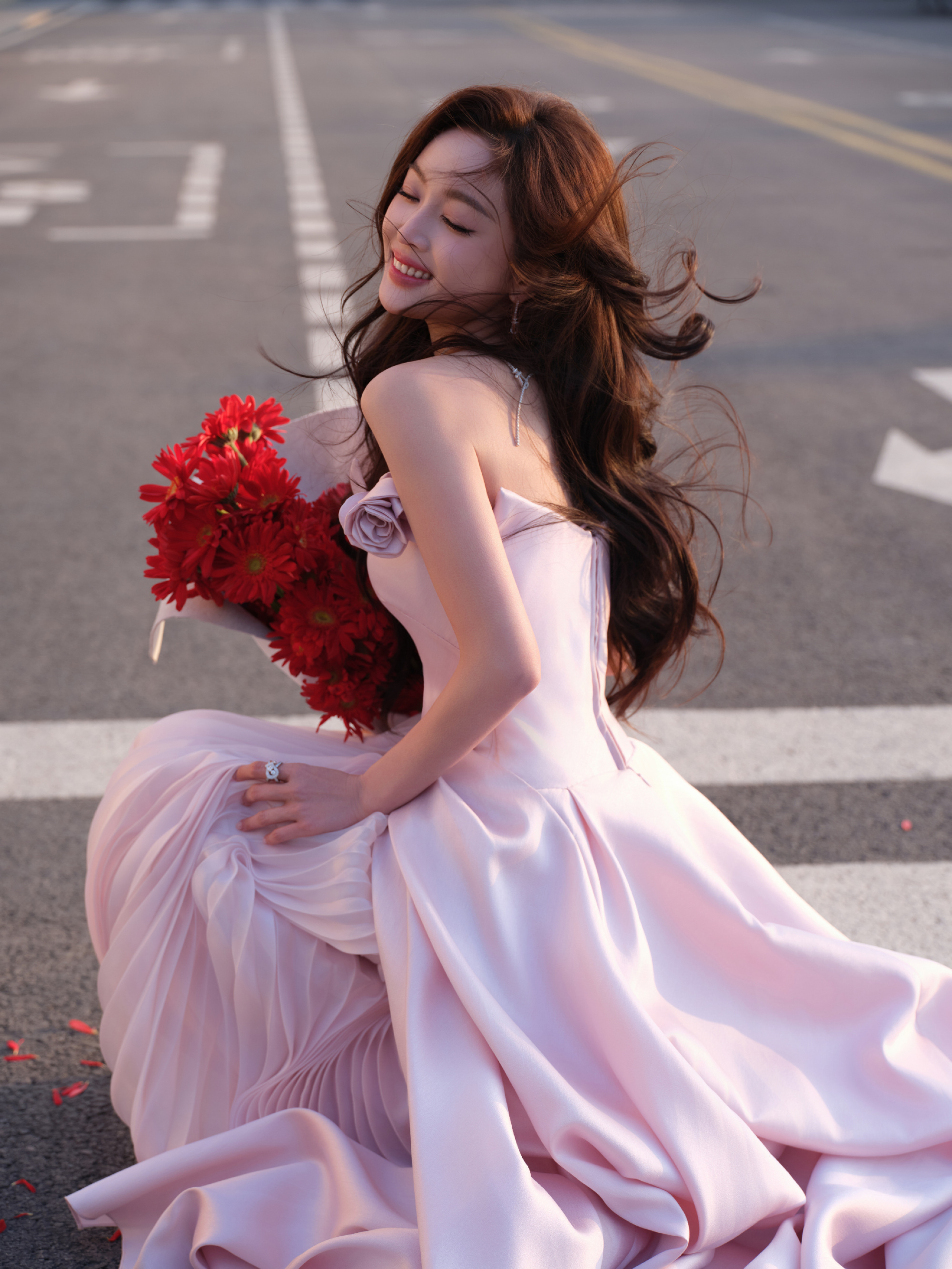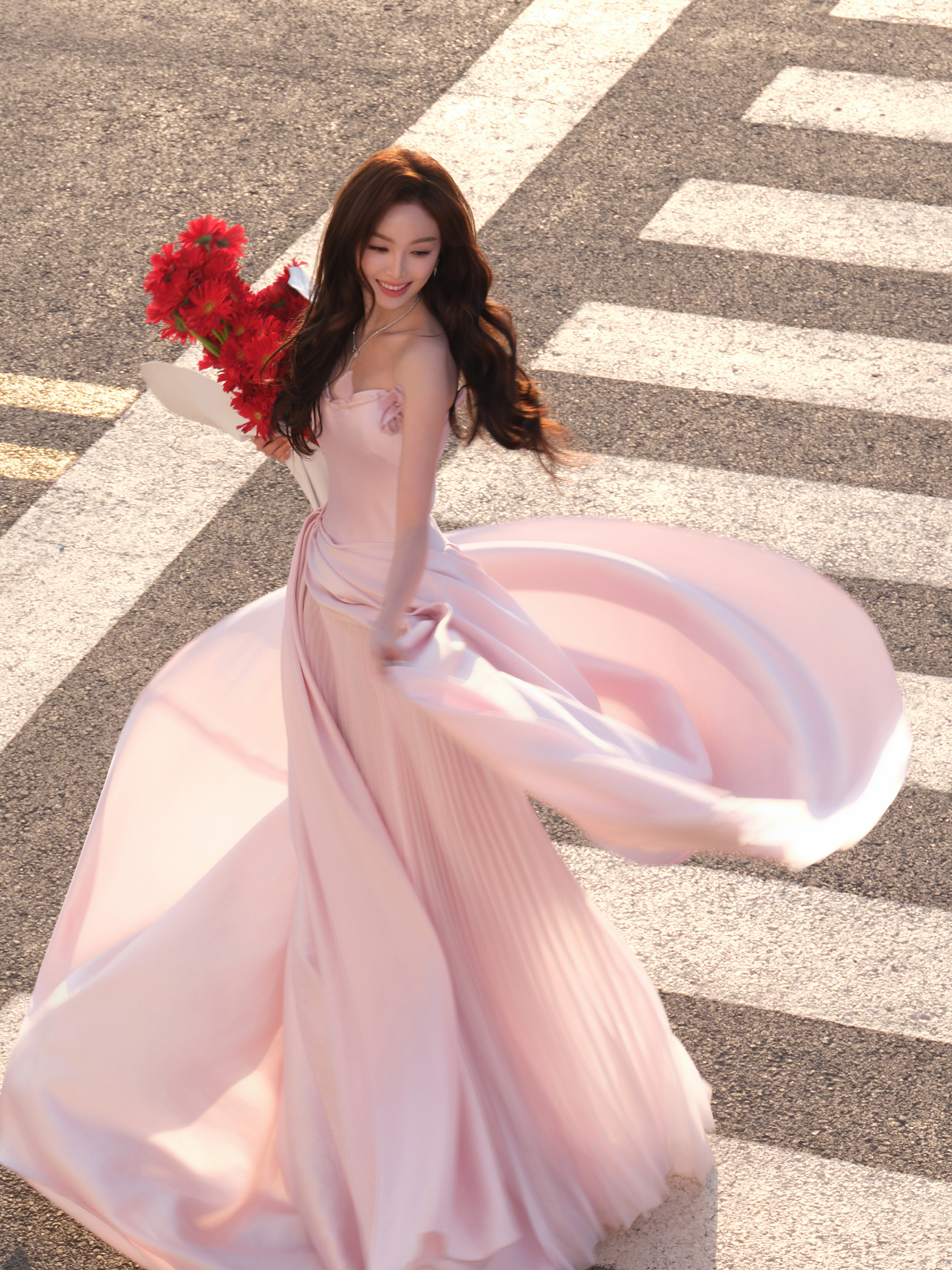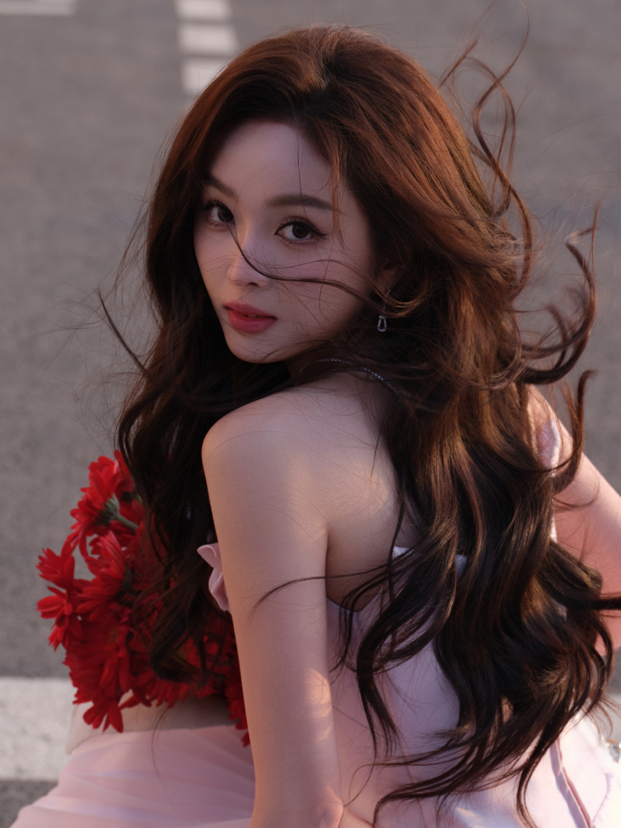 吴宣仪粉裙,街角里少女的浪漫。吴宣仪