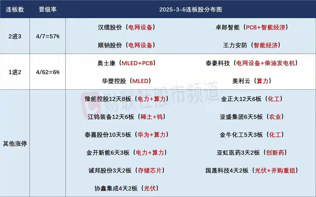 3月9日盘前预案:中东冲突升级,原油暴涨反而要注意油气走出高开低走的风险;相比于小龙虾,算电协同或许更受资金青睐! 1、中东冲突短期内很难结束,霍尔木兹海峡航道流量暴跌94%,这对于市场来说就是黑天鹅事件,所以周五美股再次出现大幅调整,而相应的是原油期货走出高潮表现,这样的情绪下,A股惯性低开是必然的,但是从周末的整体热度看,油气方向可能并不会想象中的那么强,毕竟周五盘中拉升的情况下,A股市场整体并没有跟随,那么对于板块整体的促进可能会有限,所以对于油气方向,整体是要谨防走出高开低走的表现,而洲际、通源作为板块核心的表现是最值得关注的,如果它们都不能在开盘特别强势的修复拉板,那么整个油气方向就不是去找买点了,而是去找合适的兑现点! 2、毫无疑问周末市场关注的焦点明显是算电协同,这个方向周五是走出了非常强势的表现,再加上周末消息面的消化,从情绪上看,走出持续性是大概率事件,那么板块最强个股金开能不能开出大单一字就非常重要了,只有它开出大单一字,整个板块就会有持续性,反之,一旦它都开不出一字板,板块整体就会很明显的走出高开兑现,那么这个方向就很可能像LED方向一样一日游! 能科毫无疑问是这个方向的龙二,如果金开大单一字,按照看A做B的原则,能科会是市场资金重点关注的方向,所以它开盘的竞价就非常值得期待了,一旦板块特别强,它或许也给不到买点! 能建流通市值近千亿,是这个方向的绝对趋势中军,如果板块特别强,它被带动的概率非常大,特别是板块多只一字板的情况下,这种趋势中军也是很容易被资金青睐,走出类似云天化、中石油的连板还是可以期待一下的,所以对于能建来说,只要算电协同前排个股特别强势,能建是可以在分时均线寻找不错的低吸机会! 豫能周五是烂板晋级,这只个股毕竟在重点监控时间内,周末是继续有消息上涨可能会停牌,这样的话对于豫能的趋势性就会受到影响,所以对于豫能来说,在板块的带动下,它能稳住趋势就是非常不错了,想要走出逆天连板在当下这种短线情绪下几乎是不可能的! 3、智能电网因为算电协同同样走出亮眼表现,这是市场现阶段唯一一个走出持续性的方向,这就说明资金对于这个方向是非常认可的,那么短期内就很难直接结束,毕竟板块前排依然强势,整个板块也没有出现大的负反馈,所以在板块核心个股不出现极端负反馈前,整个智能电网的趋势还是非常值得关注的,但是一旦有核心个股出现断板后的闷杀,那么整个板块可能就要走下坡路了,AI漫剧走弱的源头就是横店的A杀,这也导致龙头掌阅分歧晋级后完全没有溢价,所以对于智能电网方向,板块前排个股断板后的反馈会是一个不容忽视的风向标! 顺纳连续一字板缩量晋级,说实话这样的表现开板后的承接是难以预料的,但是豫能走出7板同样是连续4个一字板后的放量换手,所以顺纳的放量换手是比较值得关注的,特别是如果板块整体只是小分歧,有资金去强势承接做多的话,它依然会是连板概率最高的个股,但是前提是竞价不能弱于同身位的汉缆! 汉缆和顺纳有天然的竞争关系,隔日板块分歧时,它竞价能不能弱转强是一大看点,特别是竞价强势一旦强于顺纳,两只个股的强弱就很可能逆转,就像之前一波连板,汉缆3进4时的竞价是强于豫能的,所以那天汉缆率先涨停后才对豫能有所带动,但是之后一天,汉缆竞价弱于烂板的豫能,反而出现兑现走势,所以对于前排个股来说,竞价的强度对于资金的选择非常重要,所以汉缆想要有持续表现,竞价至少应该红盘开,那么板块整体不弱的情况下,就看资金会不会有超强承接去上板了,总得来说,顺纳和汉缆两只个股会相互影响,但是竞价的强度是它们能否晋级的一个关键指标! 西电是绝对趋势中军,从情绪上看,它会是板块整体趋势的一个风向标,如果前排顺纳和汉缆有很快晋级的,那么只要西电能够稳住在分时均线上,整个智能电网就很可能有持续性,反之,一旦西电出现明显负反馈,智能电网整体出现回调的概率就非常大! 4、妖股反抽是现阶段市场常见的一种模式,协鑫短时间内的再次涨停就非常强势了,因为它是连板回调到10日线强支撑后开始走趋势,短短9个交易日出现过3次涨停,而且从2月24日涨停确认后,它整体是明显的向上趋势的表现,周五的强势涨停就很容易吸引资金的关注了,毕竟整个光伏方向并没有特别亮眼表现,如果说跟算电协同擦边,那也是资金认可,所以隔日能不能高开突破5.74是一大看点,一旦开盘能够站稳并趋势向上,只要光伏整体不弱,它是很可能走出二波表现的,所以对于协鑫来说,开盘后市场的承接非常值得关注! 拓维同样是短时间内的反抽,而且这只个股很有意思,近期连续两次涨停都选在了周五,有等着周末题材发酵的意思,而且这次涨停明显是尾盘的情绪拉涨,隔日竞价的表现就非常关键了,从周末发酵情况看是不容乐观的,再加上延长披露年报,这样的话,拓维给到溢价兑现可能会是大概率的,除非它开盘特别强势的有资金去承接!