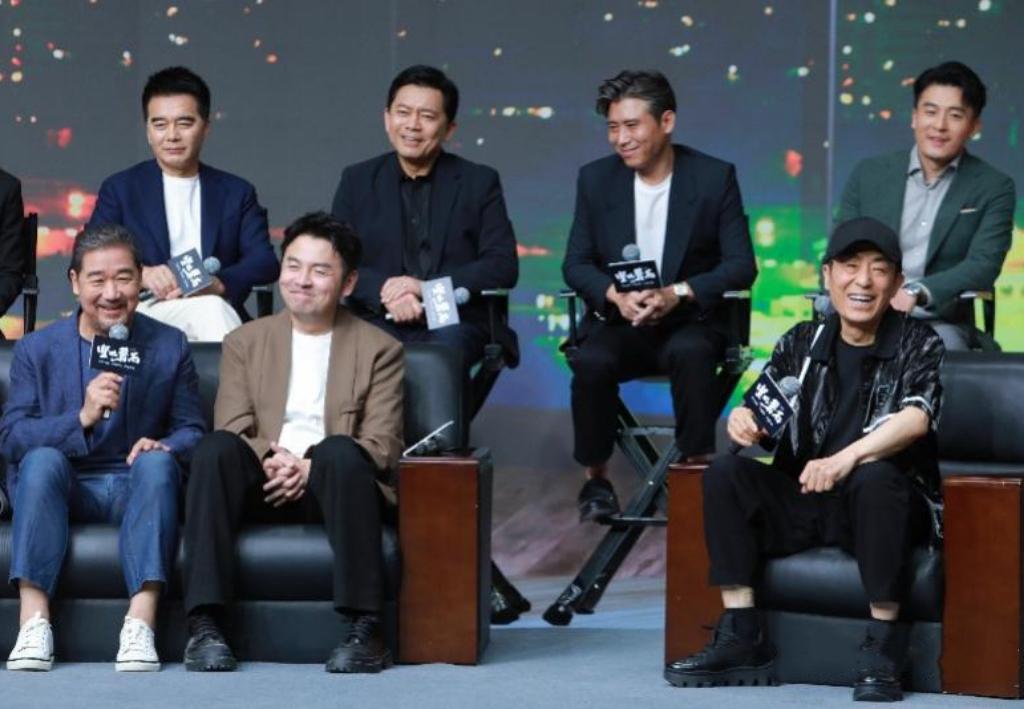 这张照片,我认出了喜容绽放的张艺谋,浓眉小眼的张国立与雷佳音,面色偏黑的李乃文,朗目疏眉的许亚军与何政军,那位穿着墨绿西装的男星是谁?