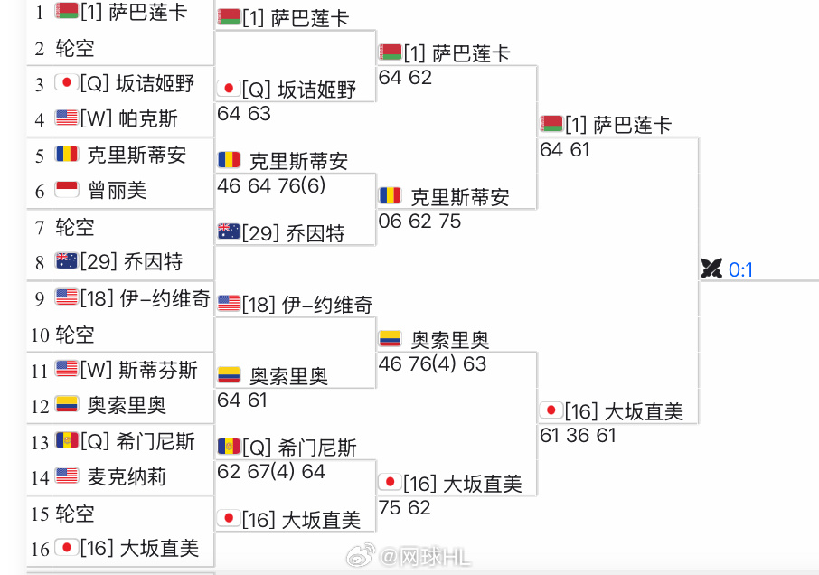 萨巴伦卡6-4 6-1完胜克里斯蒂安大坂直美6-1 3-6 6-1淘汰奥索里奥