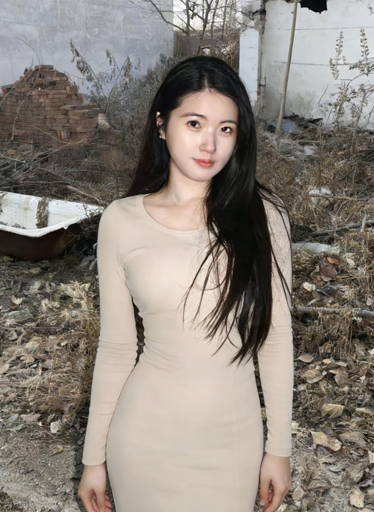 晴郊胜景美图融,秋水丹枫映碧空。 浅素裙裾摇晓露,稀疏鬓影拂秋风。 荒林石径连云远,落日清波照影同。 独立苍茫观万象,一身风骨傲霜浓。