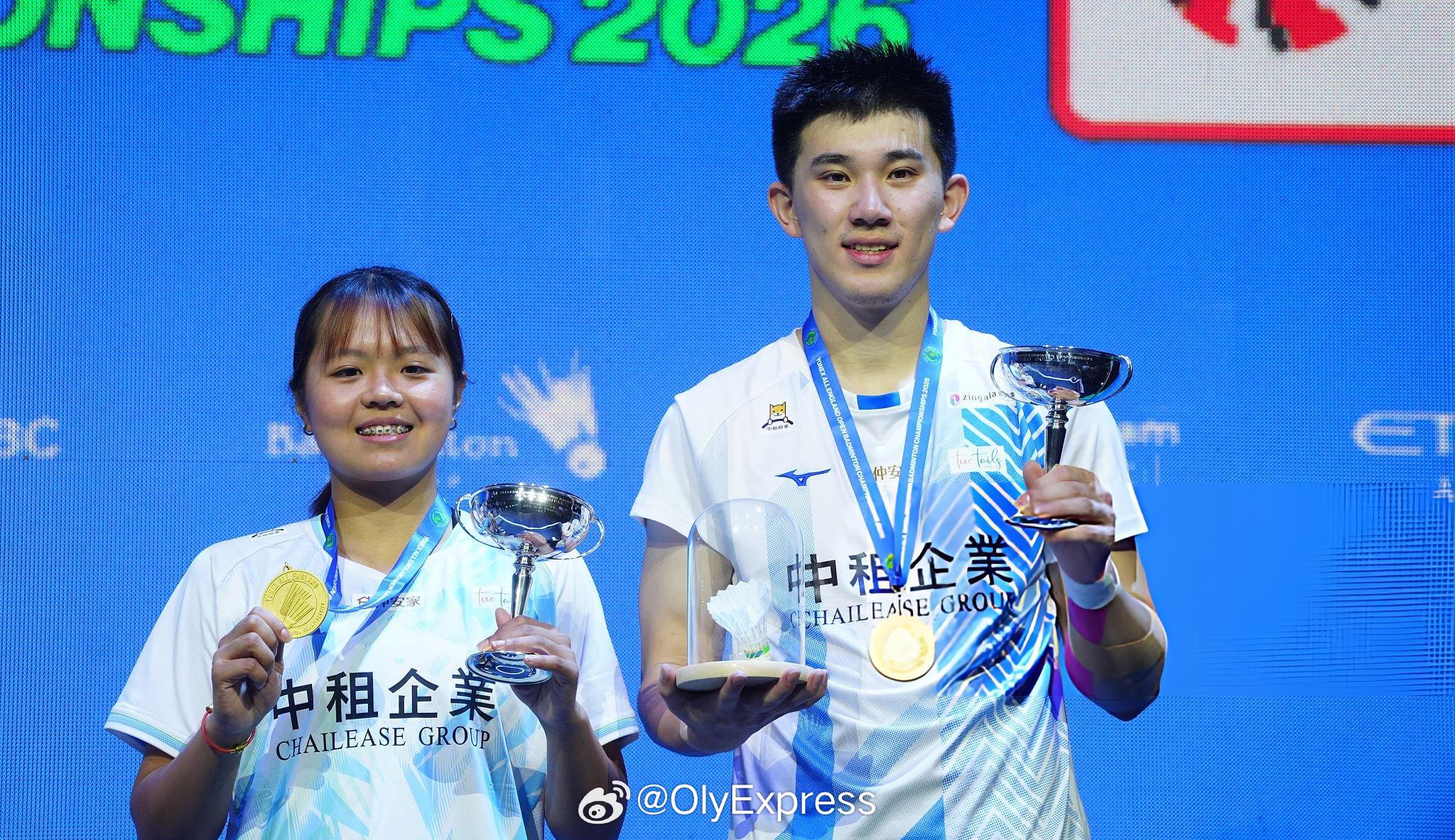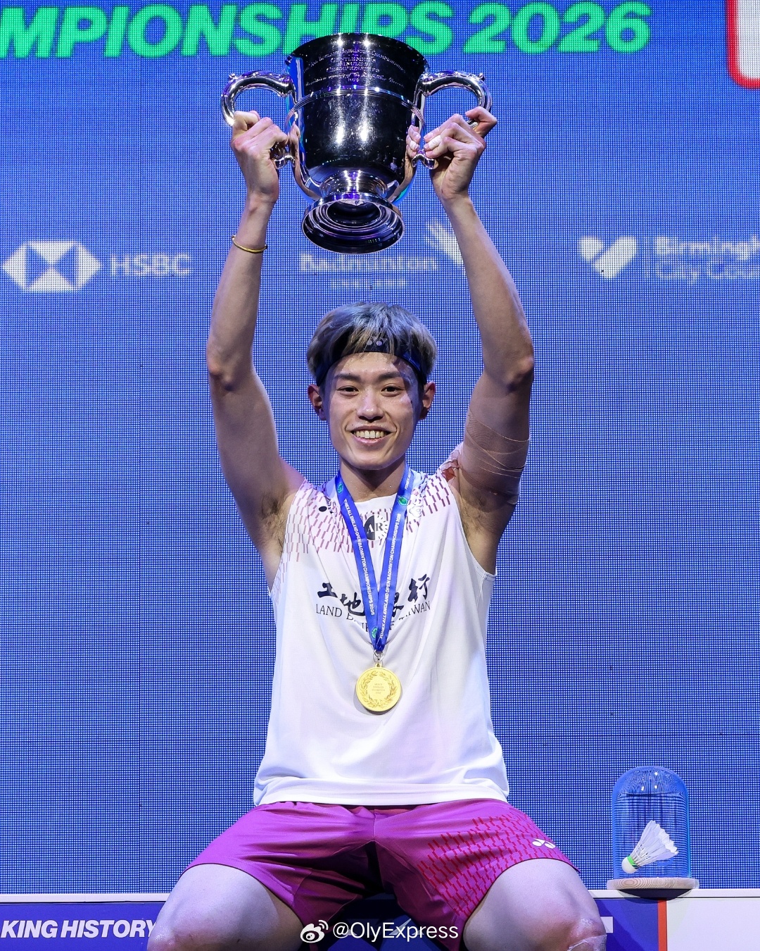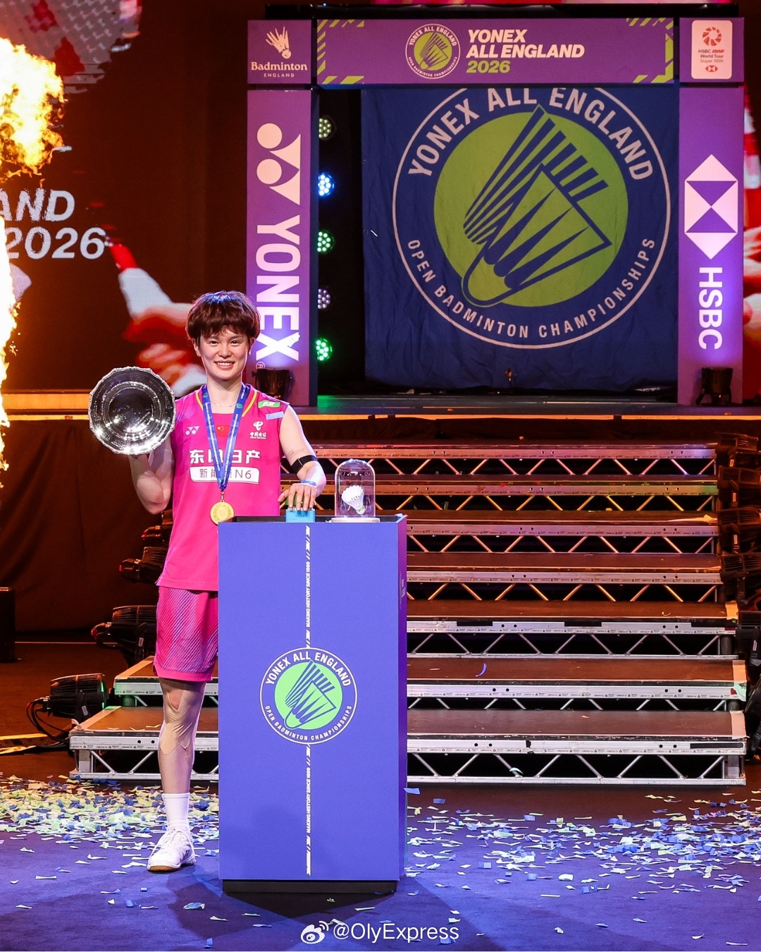 【全英冠军领奖图】王祉怡获全英赛女单冠军2026全英羽毛球公开赛3月8日伯明翰,2026世界羽联超级1000全英公开赛落幕,中国队和中国台北队各获两金,韩国夺得男双冠军。五个单项冠军分别为:男单林俊易(中国台北)、女单王祉怡、男双徐承宰/金元浩(韩国)、女双刘圣书/谭宁、混双叶宏蔚/詹又蓁(中国台北)。