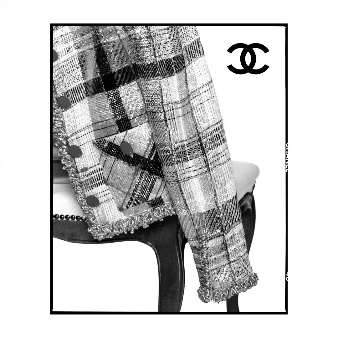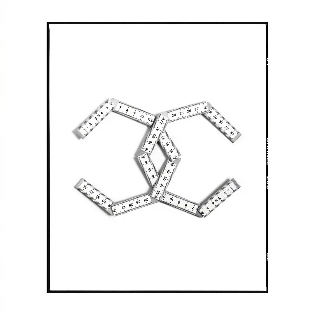 随后出现的细节同样耐人寻味——方形花瓶里的花卉、搭在椅背上的格纹 tweed jacket,以及拼成双 C 标志的裁缝尺,都像是在提示品牌标志性的工艺语言。