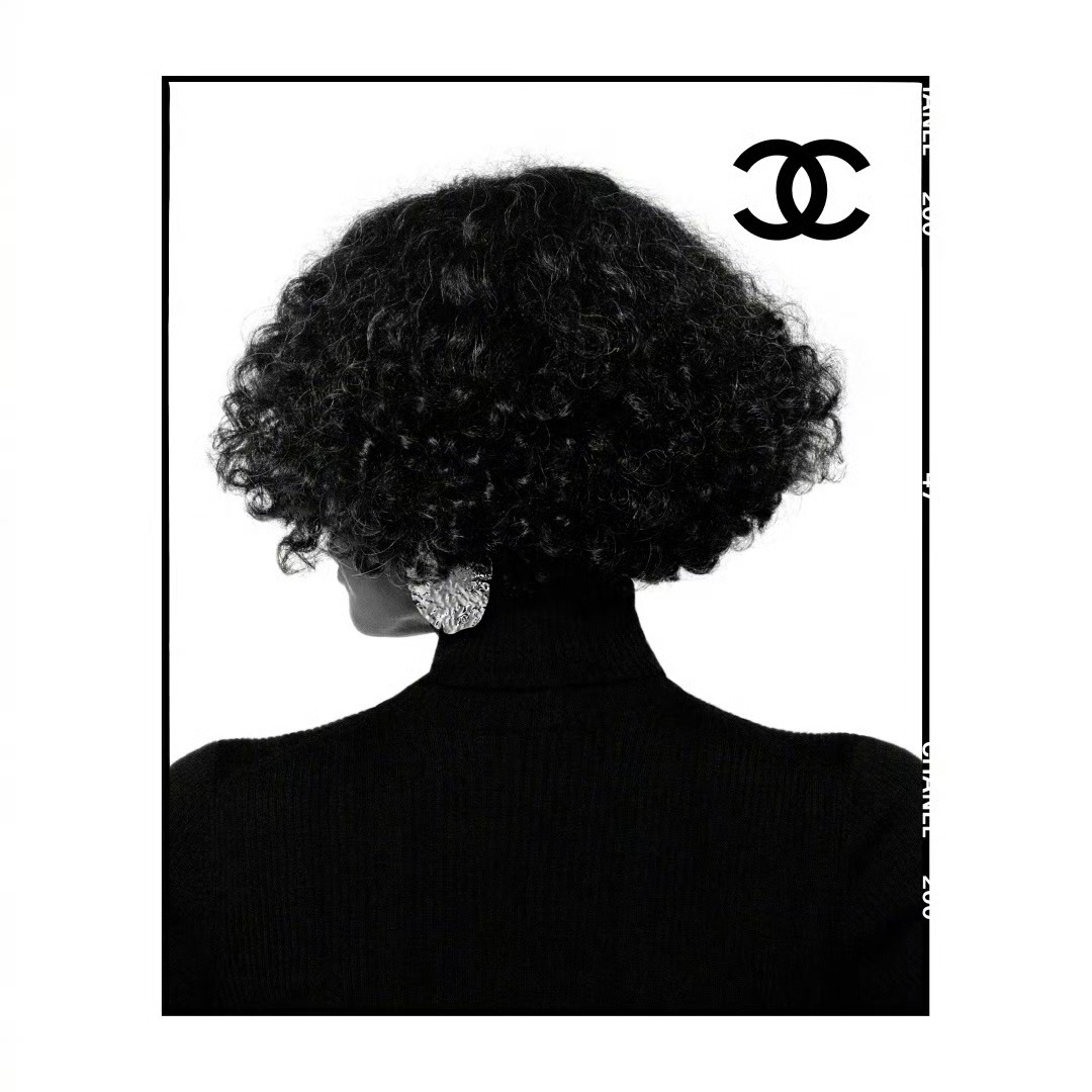 延续上一季的方式,第一张依旧是一位短卷发女模的背影:深色高领上衣搭配垂落耳下的金属耳环,简洁却充满张力。