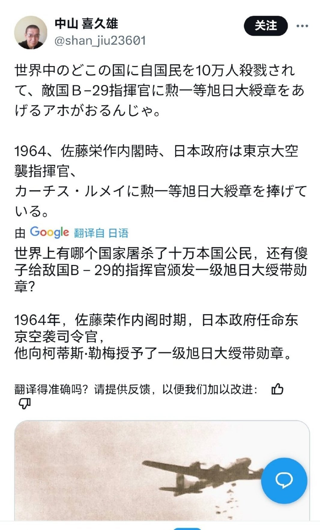 然而你们日本人不还给李梅发勋章吗