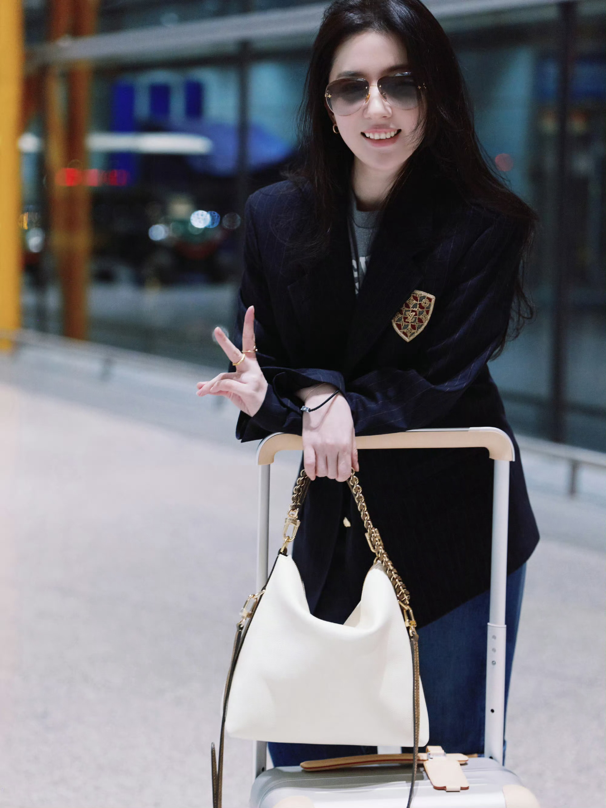 刘亦菲 in LOUIS VUITTON ✈️🇫🇷 启程巴黎时装周,即将亮相品牌2026秋冬女装大秀,西装配牛仔裤的随性简约穿搭,秀场见~ 巴黎时装周 刘亦菲机场牛仔装
