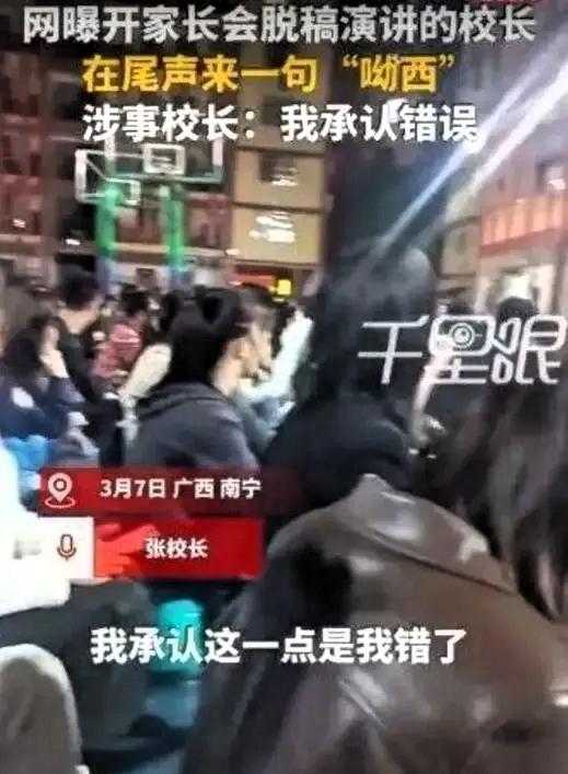 一句“呦西”,让南宁某校长的家长会演讲彻底炸了! 原本正常的家校共育交流,因为结尾一句不经意的词语,让现场气氛瞬间安静,视频传播后也迅速引发公众讨论。校长事后及时道歉,表示只是口误,希望得到大家谅解。 这件事之所以引发关注,并不在于词语本身,而在于说出这句话的身份与场合。作为教育工作者,校长的言行不仅代表个人,更会对学生、家长产生潜移默化的影响。“呦西”这类带有特殊历史背景的词汇,在正式的教育场合出现,很容易触动大众对历史的共同记忆,也难怪不少人难以接受。 很多时候,问题不在于故意为之,而在于下意识的习惯。随口说出的话,往往最能反映一个人长期的语言环境和价值认知。教育者承担着立德树人的责任,更应在言语举止上保持严谨,对历史保持敬畏,对文化保持尊重。这不是苛刻,而是职业本身应有的自觉。 我们不提倡过度指责,也愿意相信这确实是无心之失。但这件事也给所有教育工作者提了个醒:在公共场合、正式场合,用词必须慎重,心中要有底线,言行要有分寸。一段用心准备的发言,可能因为一个不当词语大打折扣;一份长期建立的信任,也可能因为一次疏忽受到影响。 真正的教育,不只在课堂上,更在细节里。尊重历史、守住底线、端正言行,既是对职业的负责,也是对学生的负责。只有教育者先做到心中有敬畏、行事有尺度,才能更好地引导孩子树立正确的历史观与价值观。小事不小,细节见修养。