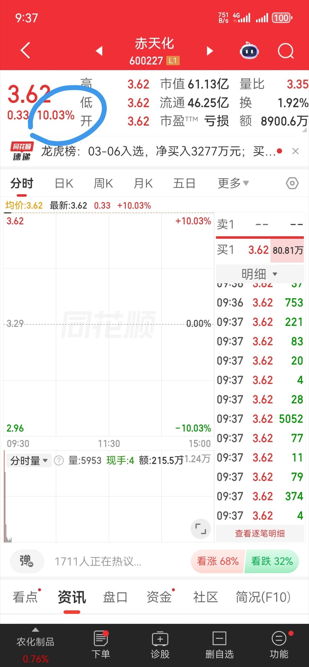 赤天h:上周精准埋伏,周五涨停、今日一出场直接封板,两连板稳稳在手,就问你6不6。我选择继续格局锁仓📈家人们,你们跟上这波两连板了吗?持仓的扣“888”,没跟上的扣“666”,咱们评论区见!