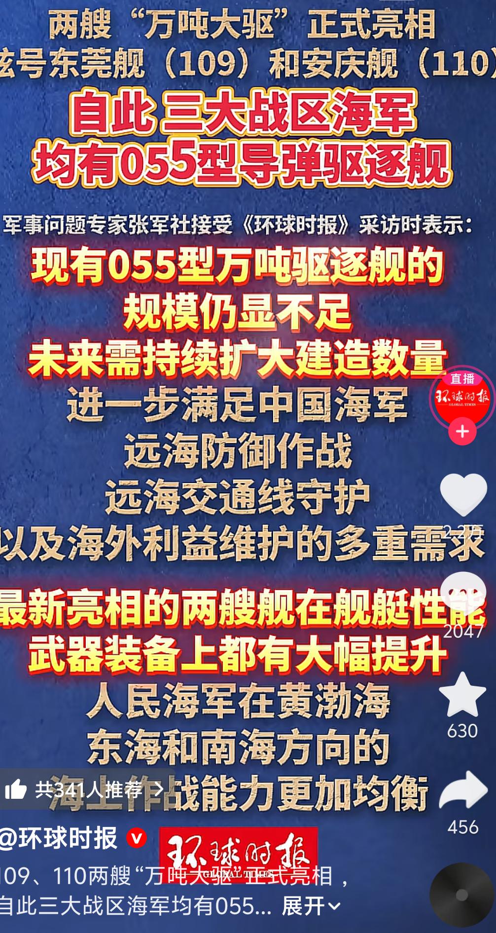 我国海军又有两艘万吨大驱入列了。 我国三大战区都用了万吨大驱。 军事专家指出,这还远远不够,未来还需扩大建造数量。中国需要不只是在近海,还需要有远洋的作战能力。这才能更好的守护我们的国家。 加油,中国!!!