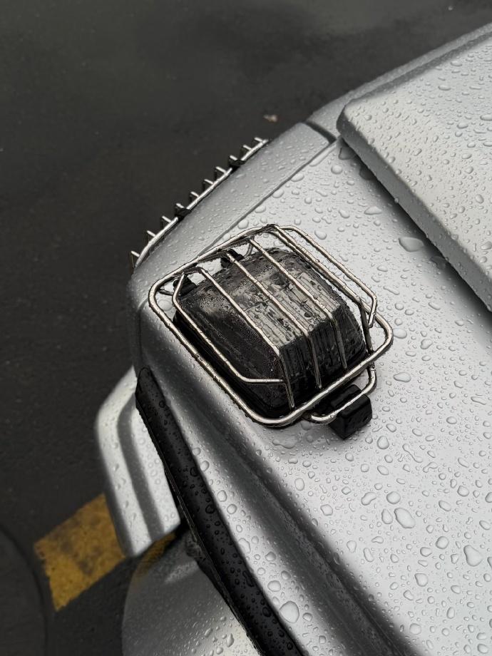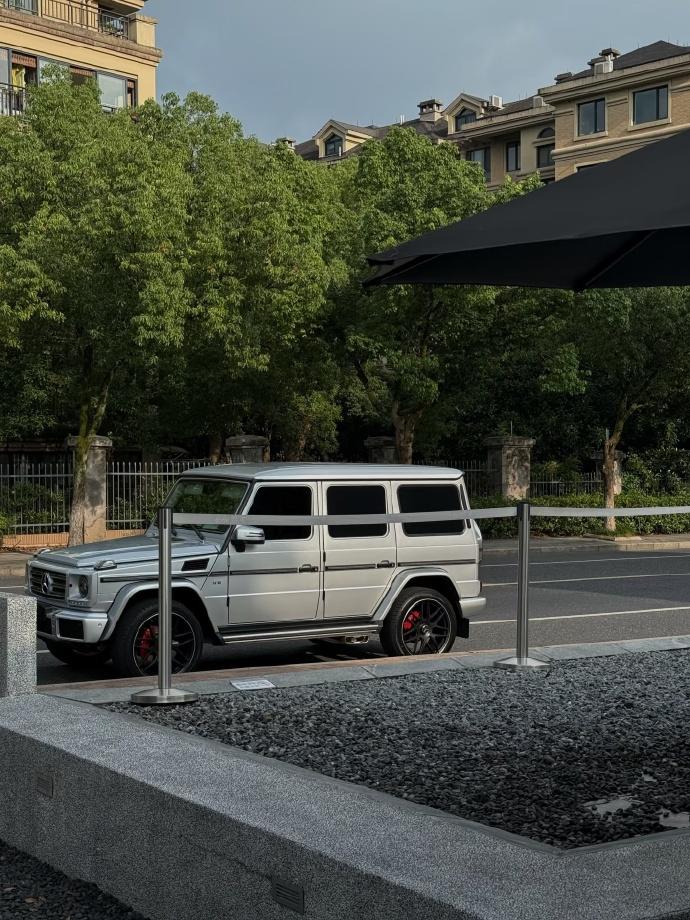 该说不说,银色的奔驰大G真的深入我心,方盒子的外观,搭配上熏黑的轮毂,红色的刹车卡钳,真的有着较强的审美。此外,车头转向灯也安排上了,还安排了银色的保护罩,确实非常硬核,十分霸气。【来自懂车帝车友圈】