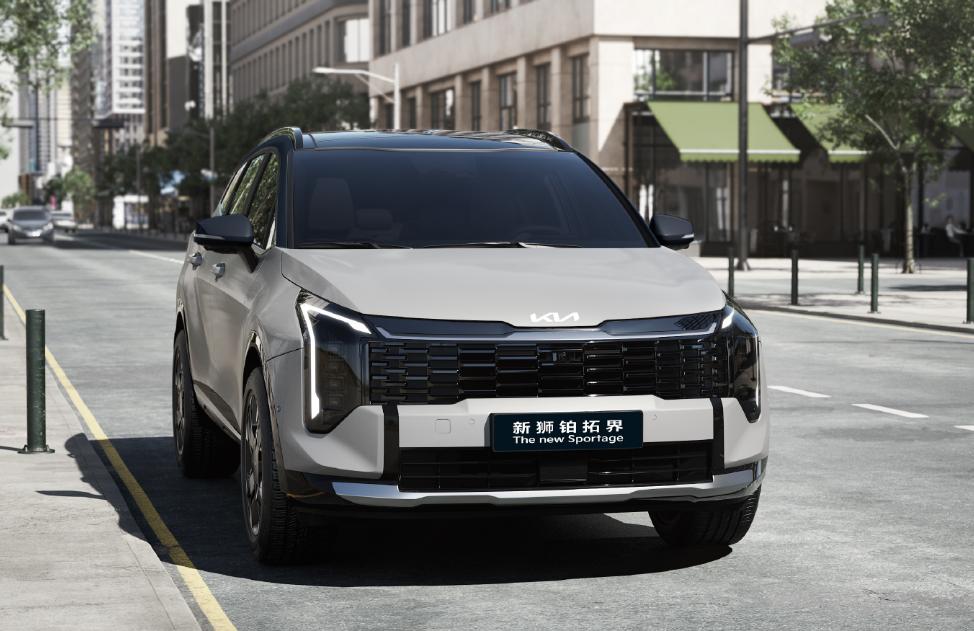 就这款起亚新狮铂拓界的外观来看,采用上了大面积的熏黑中网设计,并且车顶和反光镜也