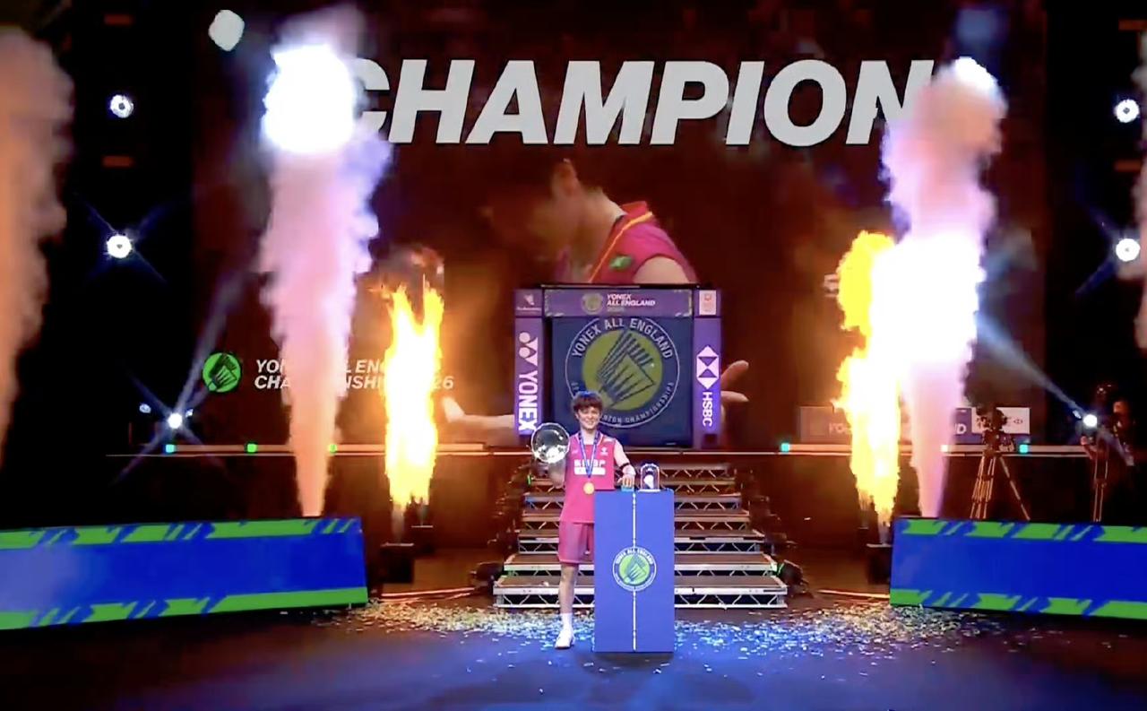 王祉怡赛后表示: “我现在非常激动,我仍然无法相信我赢下了比赛,我非常开心我做到了。比赛中我一直专注自己的战术,我觉得最重要的是相信自己。赢下安洗莹并且拿下全英冠军对我来说有很多意义,这给了我很多信心和动力,我会继续努力下去。” 王祉怡 21-15、21-19 战胜安洗莹,夺得2026超级1000全英公开赛女单冠军,结束了对阵安洗莹的10连败,终结了安洗莹跨赛季国际赛程36连胜。