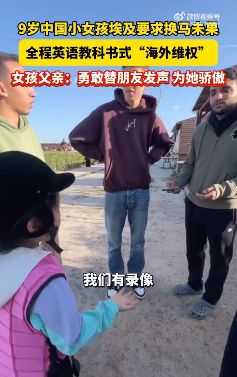 真给中国人长脸!在埃及马术场,一名年仅9岁的湖北黄石小姑娘郑浪浪彻底火出了圈。面对三名身材高大的外籍教练,她毫无惧色,用一口流利的英语据理力争,不卑不亢的劲头,网友直呼:这哪是9岁的小女孩啊,这分明是满级社交属性的“外交官”现场! 事情发生在3月4日的埃及,浪浪当时正跟着爸爸妈妈在当地马术馆学习。同行的还有爸爸朋友家的两个姐姐。 教练当时牵出了几匹性格暴躁、极其不稳定的马让她们练习。 浪浪敏锐地察觉到危险,因为在此之前,这几匹马已经摔过不少人。 面对这种不公平且不安全的安排,浪浪没有躲在大人身后,而是直接站了出来,指着其中一名教练霸气开怼:“我问过你能不能换马,你却不同意!我告诉你,如果她们摔下马,你就要赔偿我们两千美金!” 面对这名思路清晰、表达强劲的小姑娘,三名成年教练竟然被怼得哑口无言,只能摊开双手无奈解释。最终,在浪浪的坚持下,教练同意了换马。 临走前,浪浪还不忘专业地叮嘱:“以后不要用那两匹马,它们骑起来真的很不安全!” 浪浪这份刻在骨子里的自信,绝不是偶然。 她的父亲郑亚非是湖北黄石的一名烧烤店老板。在很多家长还在为学区房和补习班焦虑的时候,郑先生却做出了一个大胆的决定:带着女儿看世界。 浪浪8个月大时,全家就开着房车环游中国。 2020年后,家里卖掉房车转战国外,至今浪浪已经走过了15个国家。 因为长期在外,9岁的她已经是全家的“首席翻译”,承担起了保护同伴的任务。 郑先生表示,他们虽然在黄石经营着烧烤店,但生活理念很超前,比起攒钱买房,他更愿意投资孩子的阅历。在异国他乡,看到女儿能为了朋友的利益、为了中国游客的权益勇敢站出来,他感到无比骄傲。 评论区里的网友们看完纷纷感叹:这才是高段位的儿童素养!很多人羡慕的不是浪浪家有钱去旅游,而是羡慕这孩子身上那股子“不惹事,也不怕事”的魄力。 我个人非常支持并佩服这位家长的教育理念。 浪浪这种在社会实践中磨炼出来的能力,是任何枯燥的英语培训班都教不出来的。 她学会的不仅是语言,更是逻辑思辨能力和对规则的敬畏与挑战。这种“行走中的教育”,让孩子从小就明白:世界虽然很大,但只要你占理、够勇敢,哪里都可以是你的主场。 这种不卑不亢的底气,正是读万卷书、行万里路后沉淀出的顶级素养。 中国孩子不仅能考高分,更有能在国际舞台上维护权益、保护同伴的胆识与脊梁!