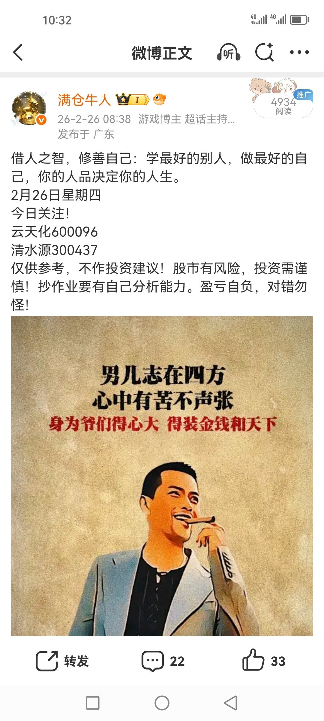 老铁们早上好!春天天气多变,忽冷忽热,晴雨不定,大家一定照顾好身体,稳住情绪。守