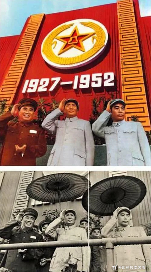 1952年的毛泽东、朱德、周恩来,下图是这张照片的原图。
