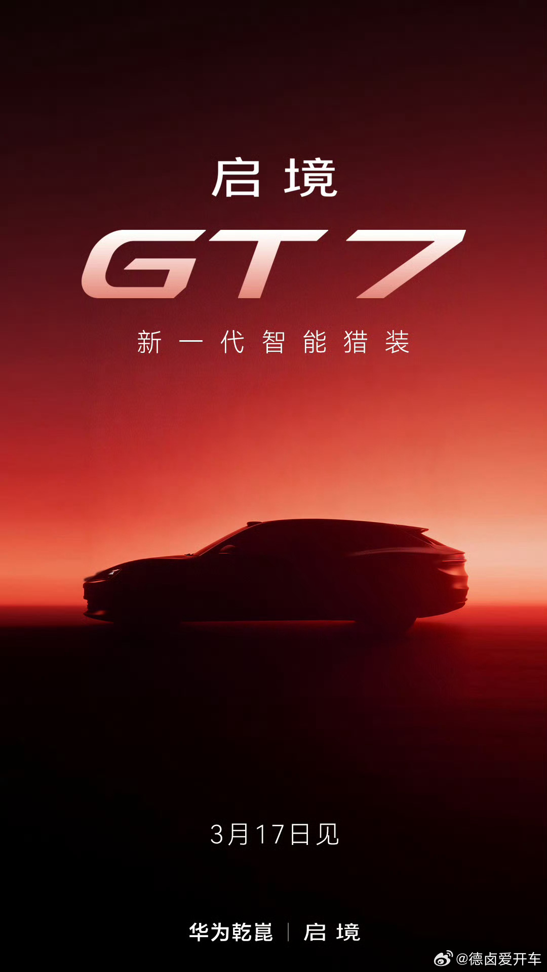 将于3月17日亮相/搭896线激光雷达!启境汽车旗下首款车型定名为GT7启境GT