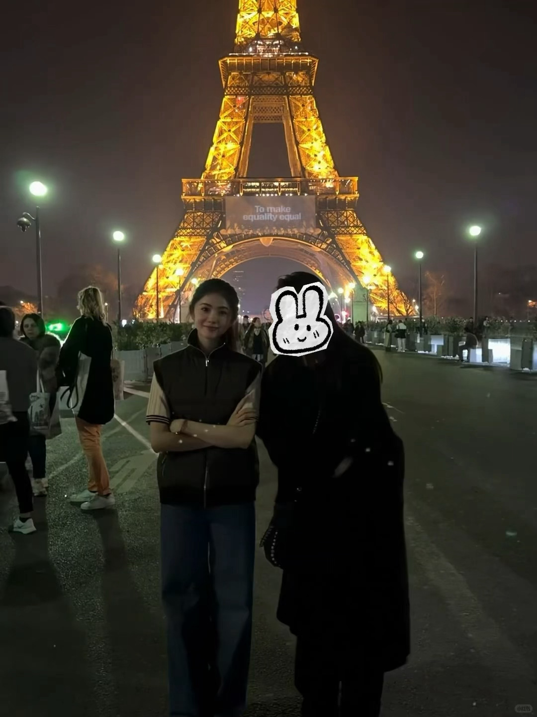 刘浩存在巴黎埃菲尔铁塔和网友合影,存儿又圆又小还包脸的一颗完美头