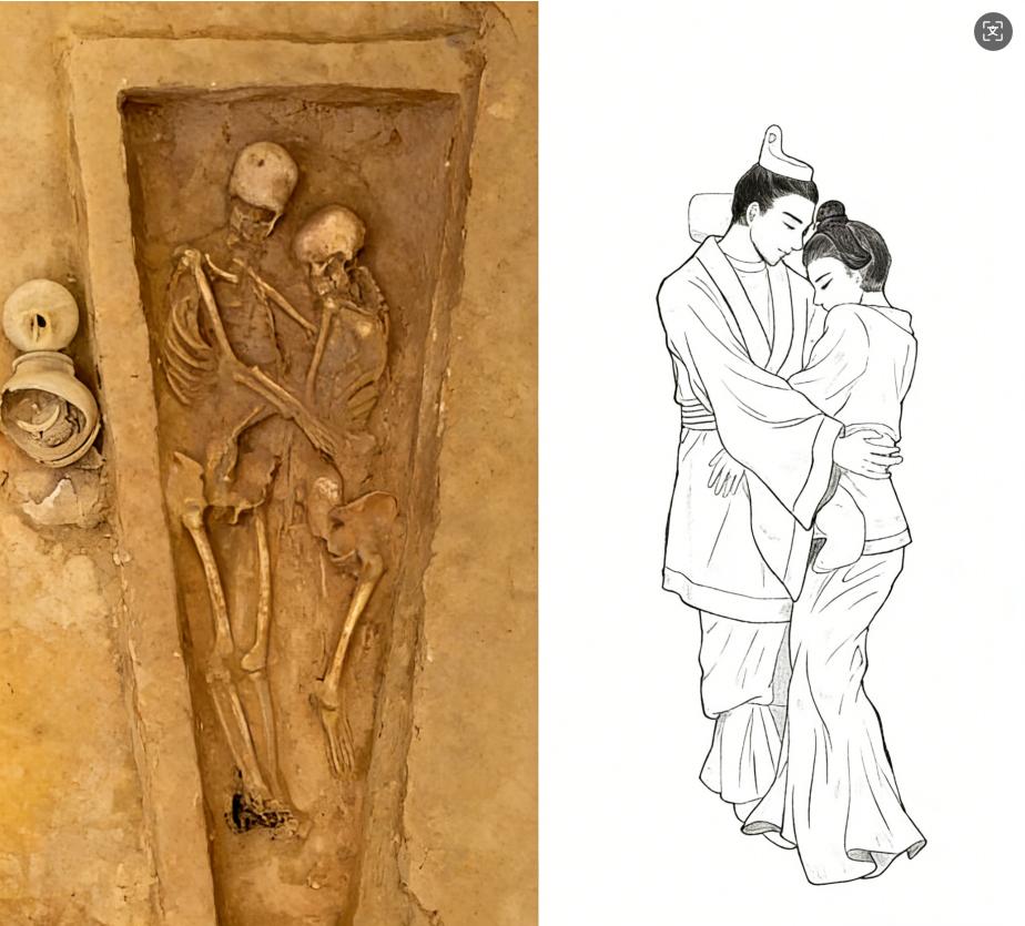 2020年,山西大同挖出一座北魏古墓,开棺后直接惊呆所有人:一具棺材内,两具骸骨紧紧相拥,这对情侣,抱着“睡”了1500年! 故事得从2020年的大同平城区说起,永泰南路与开源街交汇处的工地上,工人们正挥汗如雨搞建设。 挖掘机师傅一个猛操作,铲斗下去“哐当”一声,不是石头,是青砖——碰到硬茬了,这是古墓的信号! 这是一座典型的北魏时期墓葬,坐北朝南,长斜坡墓道,方室土洞墓 。听起来挺专业,其实就是当时平民比较流行的“户型”。 墓室不大,但很干净,没有被盗墓贼光顾过。里面只有一具棺木,而且是单棺! 在古代,夫妻合葬一般是“同穴异棺”,就是两口棺材并排放在一个墓穴里。 但这两口子却不走寻常路,非要紧紧拥抱着挤进一口棺材里,说这是一把来自1500年前的“超级狗粮”,不为过吧?考古队员们都啧啧称奇。 棺内,男主人遗骸向左侧卧,右手搭在女方腰部,稳稳地搂着; 女主人遗骸面向男方,头枕在他肩上,左手搭在他肚子上,左手无名指上还戴着一枚银色素面戒指…… 动作自然到什么程度?完全没有那种死后被硬摆出来的僵硬感。专家推测,这两人应该是在身体还柔软的时候,被同时、同姿势下葬的。 光有着拥抱的姿势,还不注意说明问题,科学检测告诉了我们更多真相—— 通过对骨骼的分析,这对“主人公”的形象逐渐清晰 : 男方:身高约1.61米,死亡年龄在29岁到35岁之间。 女方:身高约1.57米,死亡年龄在35岁到40岁之间。 发现亮点没——女方比男方大几岁。在那个“女大三抱金砖”的年代,这简直就是姐弟恋的实锤。 而且,从骨骼健康度来看,女方的骨骼比较健康,而男方,却是个伤痕累累的硬汉! 研究人员在男方的右臂上,发现了未愈合的感染性骨折创伤。也就是说,他受过伤,伤还没好就去世了。 这种伤势在古代,尤其是在没有抗生素的环境下,极有可能引发败血症,不治身亡。 有人推测,这个男人可能是个战士,或者是个干重体力活的平民。在一次意外中,他受了重伤。在生命的最后阶段,高烧、疼痛、虚弱,他可能躺在床上,连翻身都困难。 而那个女人,那个比他大几岁的妻子,就这么抱着他,守着他,一直到死! 女子的左手无名指上的一枚银戒指。 别以为这是普通的装饰品,在北魏的大同,这玩意儿早不是单纯的好看,而是定情信物,相当于现在的钻戒,戴上就等于“名花有主”,是婚姻和承诺的象征。 这枚戒指素面无纹,没有任何华丽装饰。 看得出来,他们不是什么富贵人家,却把最朴素的承诺,戴在了手上,藏进了墓里,一戴就是1500多年…… 大家最想问的问题可能是——他们是怎么死的? 考古人员给出了一个关键信息:两人并非同时死亡,但下葬时身体都还未僵硬。 合理的推测是这样的: 男人受了重伤,在那个医疗条件极差的年代,伤口感染引发了败血症。他躺在床上,一天比一天虚弱。女人日夜照顾他,端水喂药,抱着他,试图给他温暖。 但最终,他最终还是走了。 女人悲痛欲绝,眼泪都快哭干,身体被巨大的痛苦,一点点抽干。 接下来的事情,我们不得而知。 有学者根据当时的环境和墓穴情况,提出了一个假设:也许女人选择了殉情,也许是因为某种意外,她也在短时间内离世。 当人们发现他们时,一切为时已晚。 为了让两个人,在幽冥世界还能再续夫妻情缘,大家决定将他们以“拥抱”的姿势,安置在一口棺内下葬。 北魏时期的大同,是民族融合的中心,鲜卑人和中原人混住,社会风气开放,重情尚情,不像后来有些朝代那样死板。 所以,大概是这个原因,家人们才敢打破常规,用这样浪漫的方式,送别他们…… 黄土落下,时间定格。 那一刻,不是死亡,是永恒。 我们常说“生同衾,死同穴”。 同一条被子容易,同一个棺材难;同穴容易,同姿势却难! 这对北魏情侣,用1500年的时光,给后人上了生动的一课: 爱情不是朋友圈里的合影,不是纪念日的红包,不是嘴上的甜言蜜语。 爱情是受伤时我不嫌你脓疮污秽,是离世时我不肯松开的手,是即使骨骼化成粉末,也要侧过身来,再看你一眼…… 这座北魏墓葬,后来被整体搬迁到了云冈研究院,进行保护和研究。 这对相拥的遗骸,也成了大同这座城市,最浪漫的一张“名片”。 1500年过去了,大同的房价涨了又跌,平城的宫殿早已成土,鲜卑人融进了历史的洪流。 但那个拥抱,还在。 所以下次如果有人问你,你相信爱情吗? 别急着回答,去大同看看。 那两个人,还抱着呢…… 主要参考资料:新华社、大同市考古研究所、吉林大学考古学院相关发布及《International Journal of Osteoarchaeology》刊发的研究成果