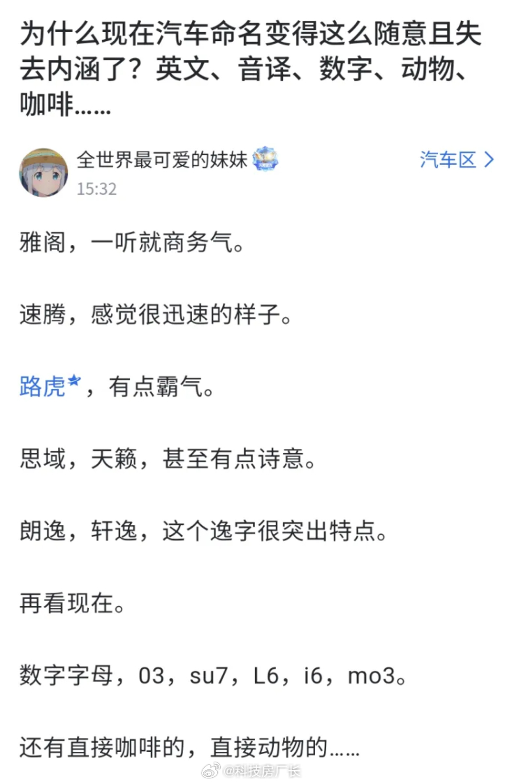 妹子吐槽国产汽车起名太土,不如海外品牌有内涵