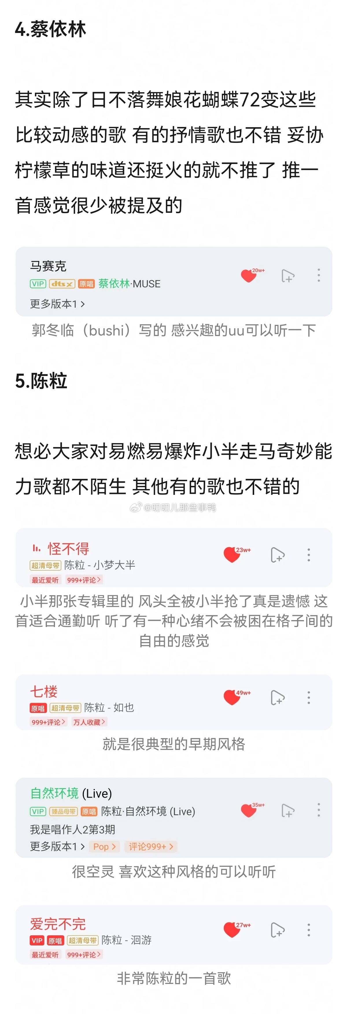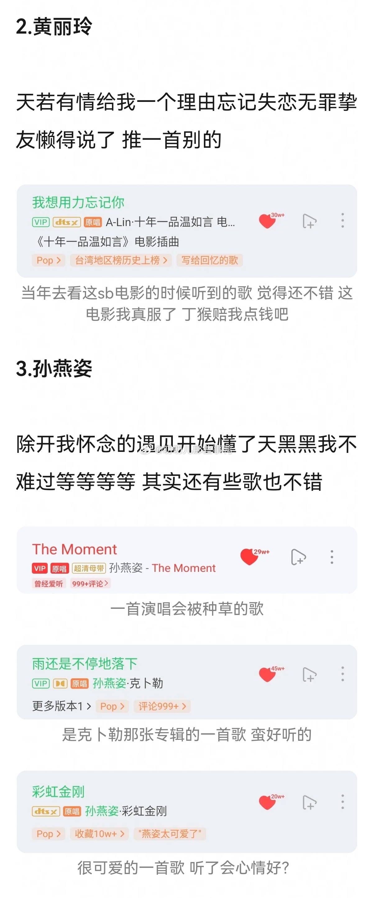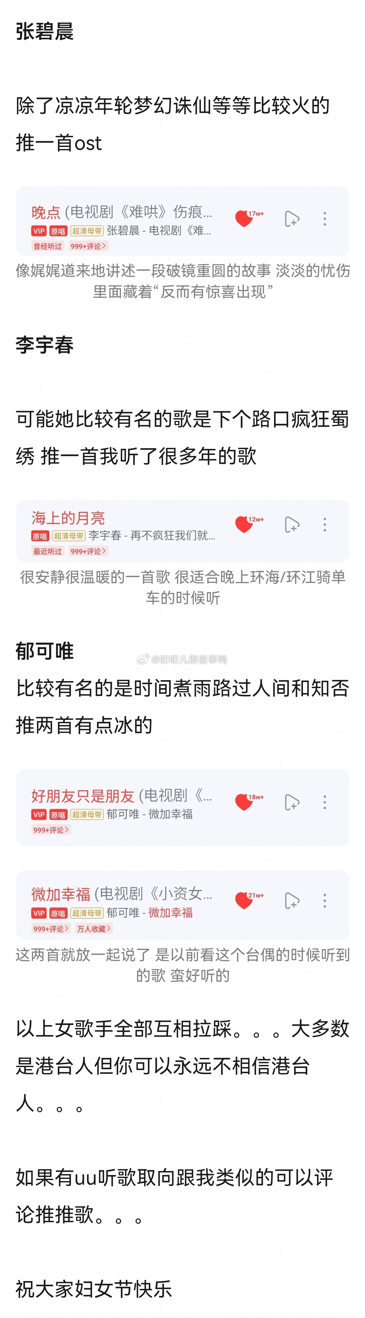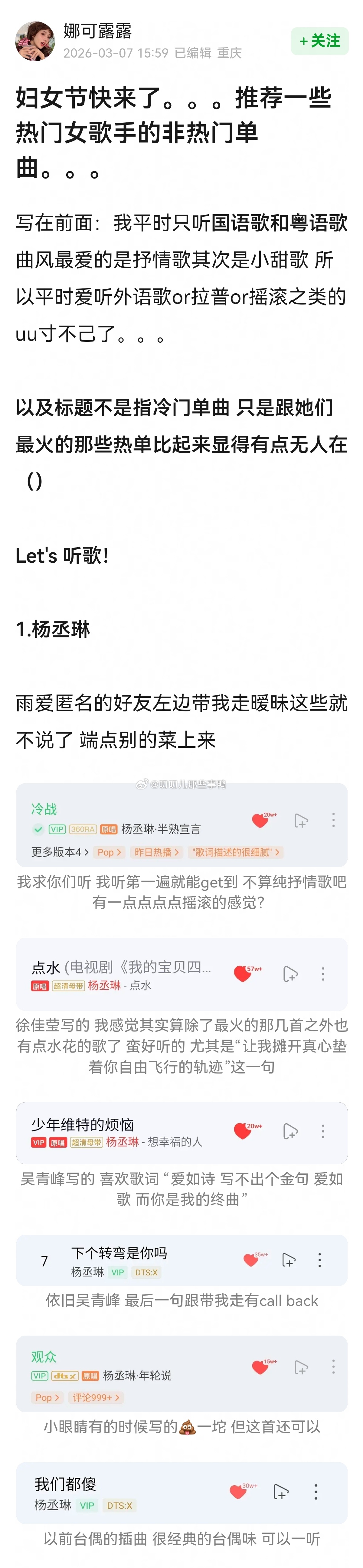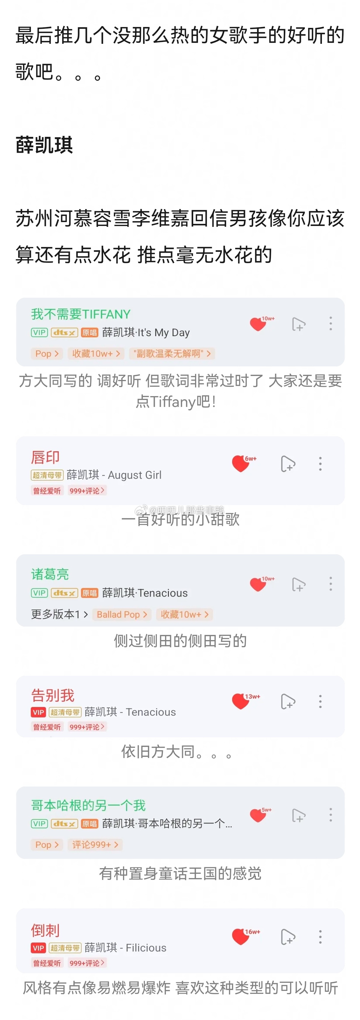 推荐一些热门女歌手的非热门单曲~