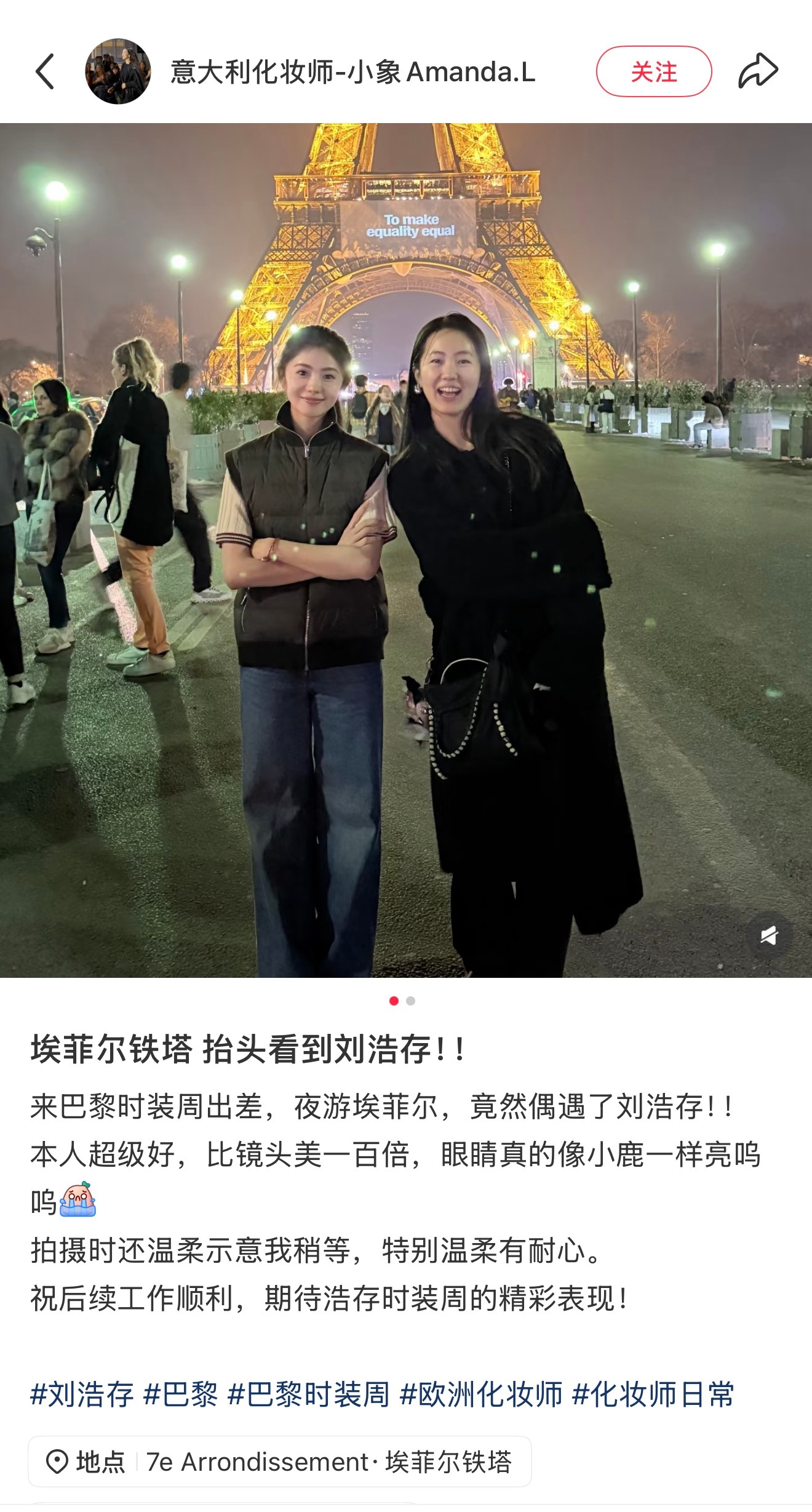 网友埃菲尔铁塔下偶遇刘浩存存儿的私服好萌啊,小小的头和脸
