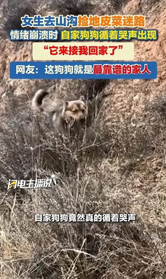 “太有灵性了!”3月6日,山西,一女子去山沟里捡地皮菜,结果迷路了,当时手机也没信号,女子一下慌了神,直接大哭了起来,没想到在这时,她家的小狗循着哭声找了过来,看见小狗的那一刻,女子瞬间心安,最后安全到家!网友:高低整个鸡腿! 那天天气不错,女子想着去附近山沟里捡点地皮菜。地皮菜这东西,学名叫普通念珠藻,雨后贴着地皮长,黑绿黑绿的,像小木耳。在山西,不少人喜欢捡回来炒鸡蛋、包包子,是春天里的一口山野鲜味。 她提着篮子就进了山沟。沟里岔路多,草木也密,走着走着就分不清东南西北了。四周静悄悄的,一个人影都没有。掏出手机信号也没有。越着急越乱转,越转越迷糊。天慢慢暗下来,她忍不住蹲在地上大哭起来,一边哭一边喊着妈妈,还有自家小狗的名字。 就在她绝望的时候,草丛里自家小狗“福福”摇着尾巴冲了过来,一头扎进她怀里。那一刻,悬着的心“咚”一声落了地。小狗围着她转了几圈,然后扭头往一个方向走,走走停停,回头看她,她赶紧跟上,福福对这条路似乎很熟,七拐八绕,竟然真的把她带出了山沟,平安回到了家。 事后想想都觉得神奇。山沟地形复杂,距离也不近,小狗是怎么找到她的?狗的鼻腔里有上亿个嗅觉受体,能捕捉到空气中我们闻不到的气味分子。主人每天活动,身上脱落的皮屑、留下的气味,就像一条无形的踪迹。狗的听觉也是一流,能分辨出主人声音的细微特征,甚至脚步声的节奏。福福很可能是先听到了主人的哭声,再结合熟悉的气味,一路寻了过来。 这不是什么玄乎的“灵性”,而是狗狗经过漫长进化获得的生存本领,加上对主人深厚的情感依赖。在它简单的世界里,主人哭了,就是需要它,它必须赶到身边。 捡地皮菜、挖野菜是乐趣,但安全永远是第一位的。陌生的山沟最好不要单独去,手机信号时有时无,一旦迷路非常危险。进山前最好告诉家人去向,带上必要的饮水和应急物品,别因为贪图一点野味而置身险境。 我们养宠物,给它们一个家,一些食物。它们回报我们的,却是毫无保留的依赖和关键时刻的挺身而出。一只小狗用它的本能告诉你,有些奔赴不需要理由,有些守护就藏在日常的一饭一蔬里。它可能不懂什么是迷路,什么是救援,但它知道,你在哪里,家就在哪里。 各位读者你们怎么看?欢迎在评论区讨论。