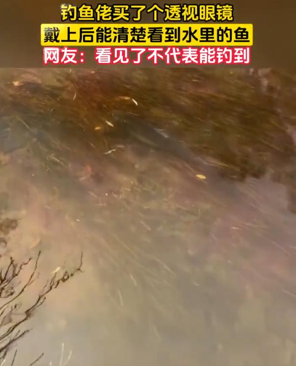 笑不活了!男子为了钓鱼,特意买了一个透视眼镜,没想到,戴上好确实有效果,看水里的鱼也清晰了,可网友一句话却扎心了:看见了钓不到,那不是更着急? 男子平时最大的爱好就是钓鱼,而为了钓鱼那是真下了血本,不知道从哪搞来一副号称能透视水面的眼镜。戴上之后好家伙,还真有效果,视频可见,男子所在的水面其实比较清晰,天气好的情况下,即便没有眼镜,也可以看到水里的鱼,而当他戴上眼镜后,效果则更加明显 有网友质疑:真的有这种眼镜吗? 其实啊,这个所谓的透视眼镜,这就是个钓鱼专用的偏光镜。这玩意儿确实有用,它的原理很简单,就是帮你把水面上那些乱糟糟的反光给过滤掉。尤其是大太阳天,水面反光刺眼得什么都看不见,戴上它,眼睛舒服了,水里的情况也能瞅见个大概 要是水浅又清,那效果确实像视频里那样,鱼看得一清二楚 但是,这玩意儿也不是万能的。它毕竟不是X光,水要是深了,超过一两米,底下乌漆嘛黑的,你戴啥眼镜都没用,该看不见还是看不见 所以,这事有意思的地方就来了。以前大家钓鱼,讲究的是个技术,是经验,是跟水里的鱼斗智斗勇。你看不见鱼,得琢磨鱼在哪儿,在想什么,用什么饵能骗它开口 现在好了,科技给你开了一扇窗,让你直接看见鱼了。你以为这是开了外挂,其实呢,是把钓鱼的乐趣给减了一半,痛苦给加了一倍 为什么这么说?看不见的时候,没口,你可以安慰自己,这地方没鱼,或者鱼不饿,心安理得地收拾家伙回家。现在好了,你眼睁睁看着鱼就在你脚底下,它绕着你鱼饵转三圈,闻一闻,碰一碰,就是不张嘴。或者它张了嘴,你那钩子就是挂不上。你说你急不急?