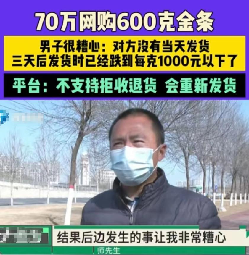 河南郑州,男子花70万网购了600克金条,眼看着金价一路上涨,商家就是迟迟不发货,直到三天后金价跌破1000元每克,商家这才给他发货,让他白白损失了几万元。男子觉得,商家就是看到金价跌了才发货,故意把风险转嫁给客户,他一气之下拒绝收货,申请退款。没想到,平台却答复他,贵金属不支持拒收退货,后期会给他重新发货。 当初,金价还是扶摇直上,身边人有人在去年“抄底”后赚得盆满钵满,师先生也忍不住想蹭一把运气,这次直接梭哈,目标很明确。 但那单70万的金条,却卡在了商家后台。 手机刷单页面,还停留在“商家正在打包”,师先生反复盯着订单,他心里头咯噔一下,平台上的贵金属,明明说好的是当天发货,他之前买都没出过问题,这回怎么突然卡壳? 两天的时间,金价像坐在火箭上一样蹿起来,他掐指一算,只要商家立刻发货,哪怕利润有折损,也能多赚好几万元。 可那头的商家,既不更新物流,也不回复消息。师先生瞅着界面,冒火气,心想这不是耍赖嘛。 事情的转折点就在第三天傍晚,金价突然哗啦啦往下掉。 平台上的界面一刷新,神奇地跳出“已发货”。 可怜师先生那颗悬着的心,彻底凉了半截,他一眼就看穿了里面的门道。 等到金价跌破千元,商家这才捡了“顺风顺水”的好时间把金条快递出去,这算盘打得不能再响。 其实,外表风平浪静,内里的较量一点都不简单。 信息点一分析,这家商家不是正儿八经的黄金加工厂,而是个中间商,货源靠着广西的第三方供货。 中间商最大的本事,就是控制信息与时间,不怕出不了货,就怕给错价格,赔进去本金。 当金价疯涨,他们乐意晾着客户,毕竟自己可能也抠不来现货,甚至怕高价买,干脆拖着看走势。 等到金价跌了,成本下来了,这才发货。 这不是欺负人吗?师先生的钱都给了,商家却在做局,看着市场涨跌,决定客户能不能进场,这场“时间差游戏”,就是把原本该自己承担的风险,硬塞给了已经买单的师先生。 到这一环,事情不单纯是一个简单的快递慢了。 按照民法典的说法,商家延迟履行合同本就是问题,更别说因为涨价故意拖延,这道理搁谁那儿都说不过去。 实际情况是,买金条的合同早签了,钱也付了,剩下的就是该谁承担涨跌风险的问题。 如果答应了当天发货,却在涨价时躲清闲,砸到跌价才行动,这显然不是“商道”之本。 师先生这口气咽不下去,干脆直接拒收。退货按钮一点,没想到等来的是一纸冷冰冰的回复:贵金属这类特殊商品,平台不支持拒收退货,后续还要安排再次发货。 相当于,70万压在那边,对方不管是故意还是真没货,只要给你发走就算交易完成。 有句老话,说是买卖公平,各凭本事。可如今情况变了,投资趁着网络平台走得越来越快,客户信监管、信平台,花的是大钱,拿的是平台的“信誉背书”。 故事背后,每个大平台,每个卖家,都喜欢把“规则”挂嘴边。 有点常识的都知道,平台应该是在买家和卖家中间,起个调和的作用。 可真等出了事,平台并不关心背后具体的实际情况,只会推那份“贵金属特殊规定”,标准得很。 问题关键,平台不管商家乐不乐意当天发货,只要发货了,就等于买卖双方两清。 归结到底,这种生意模式,出事的永远是用户。 消费者面对一套规则雾霾,浑身是力气却没处使,短短三天,利润全浮出水面又沉没海底,平台和商家以一分不让的“特殊规定”,成功转移掉所有风险。 师先生这一单,给全国的投资者都提了个醒:未来碰上高价商品,别信单纯平台承诺,更别对规则过于盲信,真出了问题,能否站稳脚跟,还得看自己懂多少“规矩”里的小字说明。 规则如果可以随意挪移,不光影响到一位投资者,也会把整个平台和行业的公信力都拉低。 师先生遇上的这场局,没能靠法条讨回公道,但至少为其他人敲响了警钟。 买卖本是公平的,但平台护商家、规则卡客户,谁也沾不到真便宜。 商家玩“时间差”,收益归自己、风险甩客户,便宜赚得快,可惜伤的是难以恢复的信任。