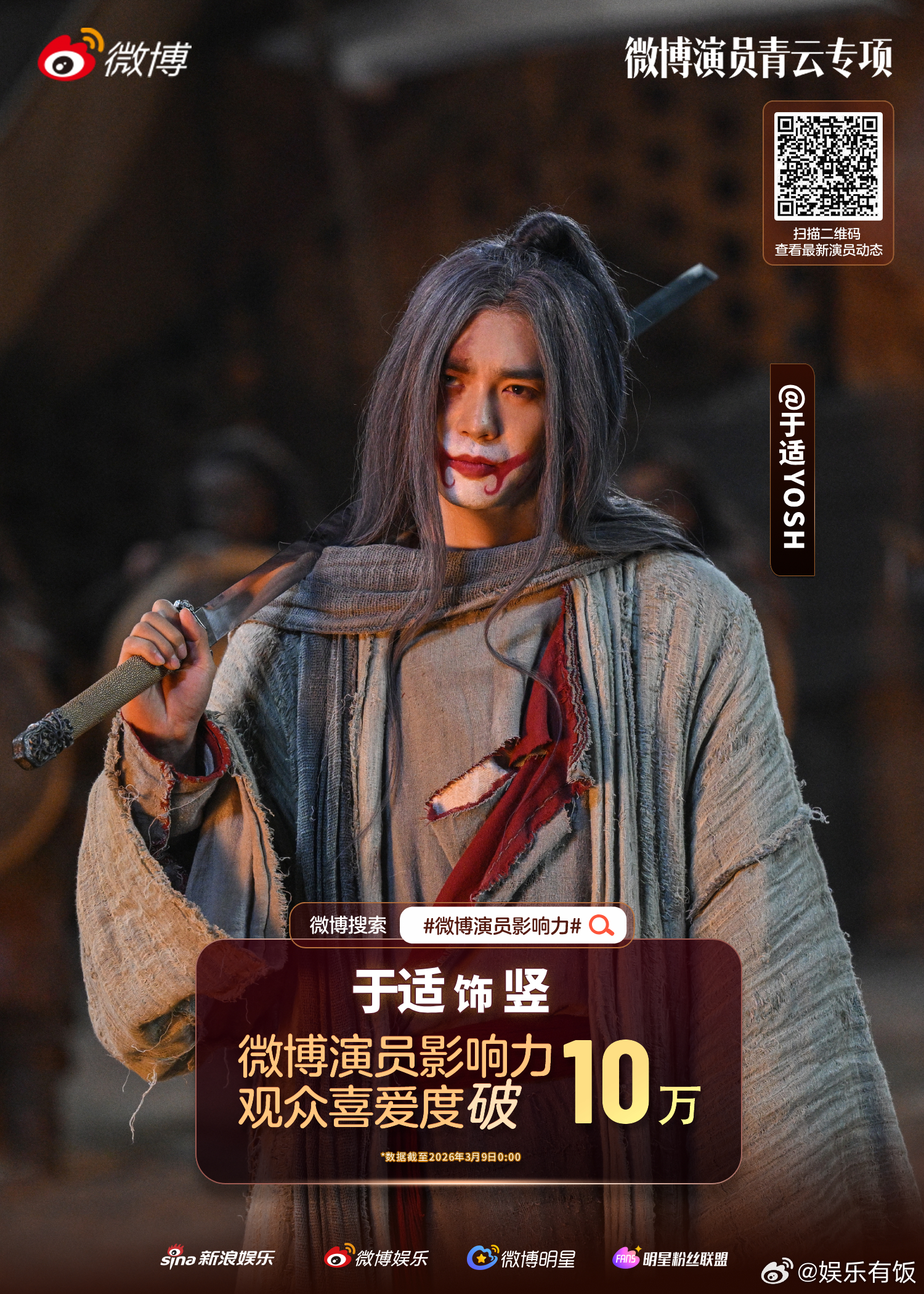 于适竖观众喜爱度破10万 恭喜《镖人》竖观众喜爱度突破10万!角色独特的气质和极具辨识度的表现都让人印象深刻,每一次出场都自带张力,人物魅力被稳稳get,10万喜爱是观众对于演员演绎最好的回应👏戳👉 网页链接 支持你喜爱的演员!微博演员影响力于适yosh