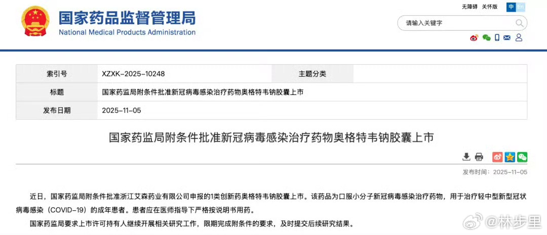 国产新冠口服药物获批新冠的新药,奥格特韦钠。