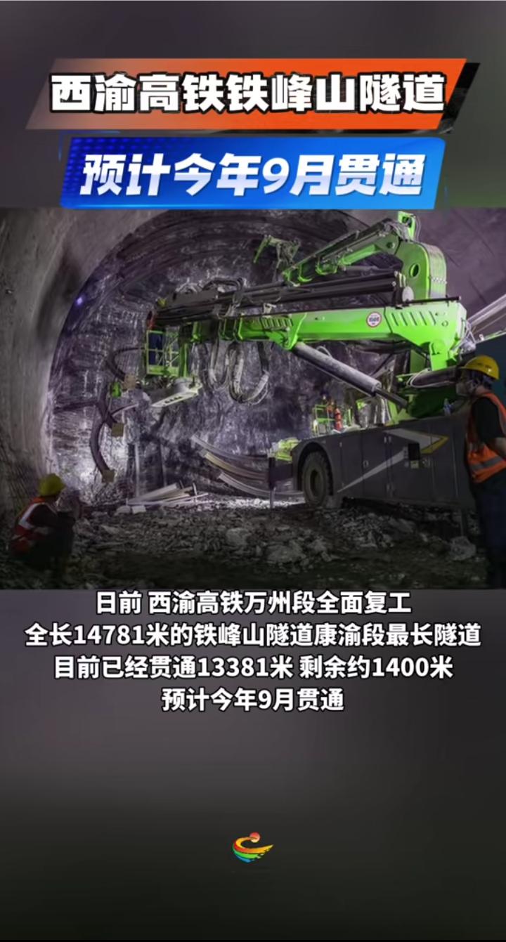 重庆途经达州至西安时速350公里的渝西高铁渝康段控制性工程全线最长隧道铁峰山隧道(14.7公里)预计9月可以贯通,控制性工程城口任河特大桥(塔高173米)正在冲刺合龙,4台10线的安康西站已经顺利挂牌亮相,目前站房总进度已经完成95%,预计年内投入使用,达州南站和广安东站也在全速建设与装修中,预计分别如2027年和2028年投入使用,渝西高铁作为国家八纵八横高铁网络重要的组成部分不仅能方便重庆和西安之间城市区县来往,未来也是云南重要的进京大通道。