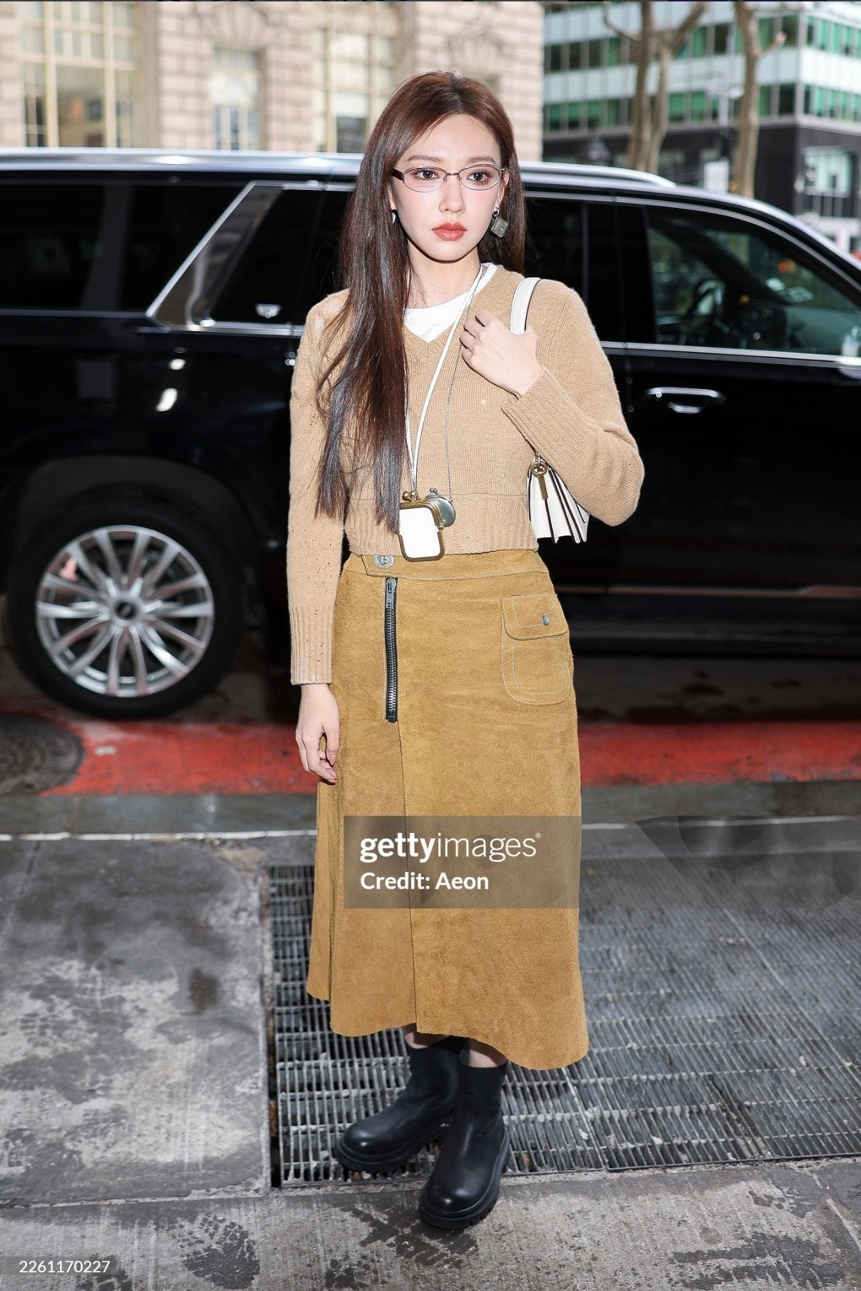董洁这抹亮黄,太显白了!💛董洁街拍好会穿!亮黄色夹克内搭卡其衬衫,配黑裙